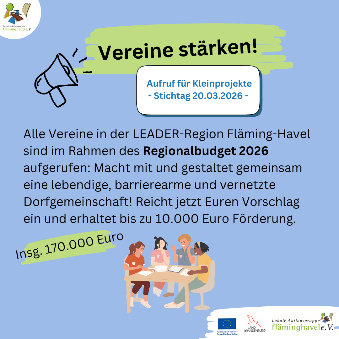 LAG Fläming-Havel startet Förderaufruf für Kleinprojekte unter dem Motto „Vereine stärken!“