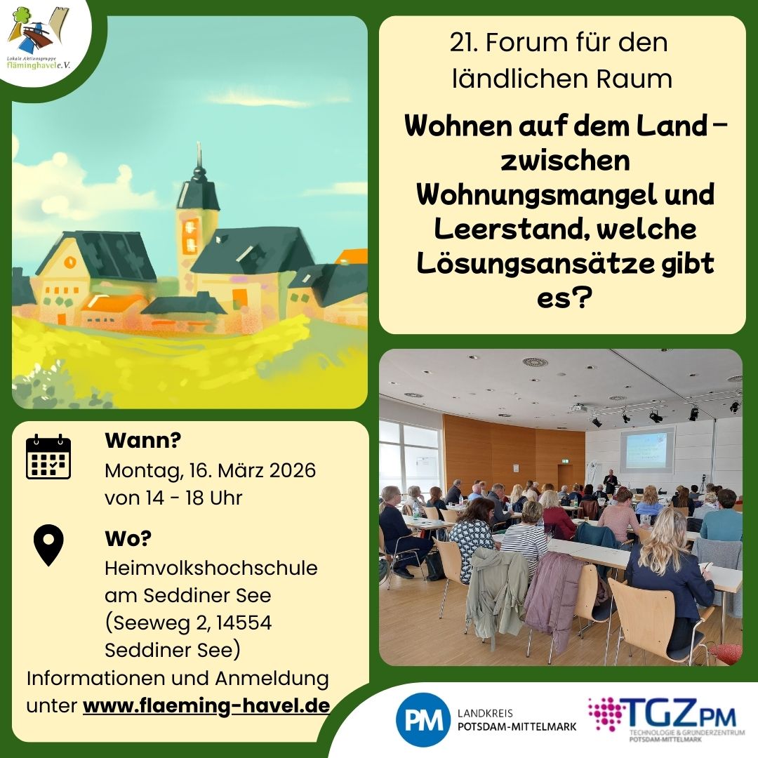 Potsdam-Mittelmark. Unter dem Titel „Wohnen auf dem Land – zwischen Wohnungsmangel und Leerstand: Welche Lösungsansätze gibt es?“ findet am Montag, dem 16. März 2026, von