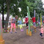 Grabow. So einen Menschenauflauf wie am Sonnabend hat das Flämingdorf Grabow wohl selten erlebt. Zur Einweihung des neuen Kinderspielplatzes versammelten sich die Kleinen und Großen in großer Zahl. Geduldig wurde die Rede von Ortsvorsteher Matthias Gräning abgewartet. Die Spannung stieg, bis Spielplatz-Initiator Peter Ostwald und Matthias Gräning das rote Eröffnungsband zerschnitten. Schnipp, schnapp und durch war es. Schnell wurden Erinnerungsfotos geschossen und schon wurden die Spiel- und Klettergeräte erstürmt. Jeder wollte der erste sein! Das Geschenk zum Internationen Kindertag war echt gut gelungen. Nicht allein das, Grabow verfügt seit wenigen Wochen über eine neue asphaltierte Dorfstraße, die rund um die idyllisch gelegene Feldsteinkirche mit Dorfteich verläuft.