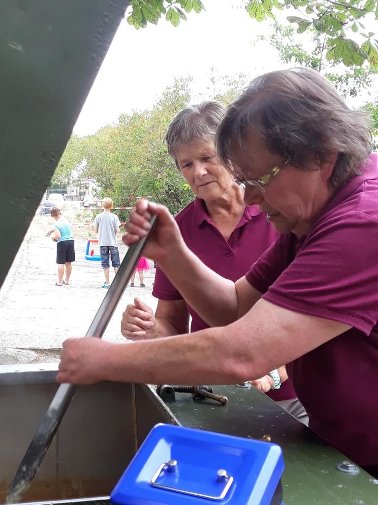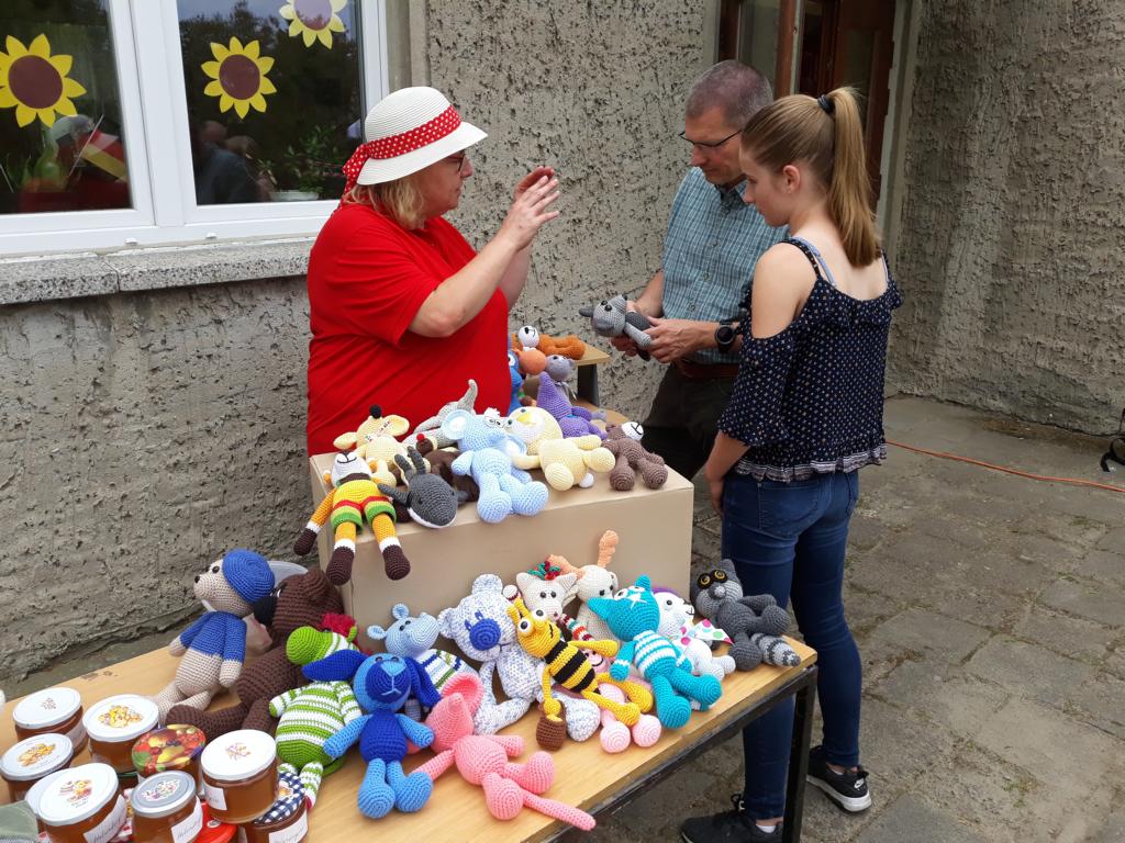 Während des Nachmittags hat Küchenchefin Katrin Schröten dem „Hausmeister“ Detlef Scheibe mit einem Präsentkorb gedankt. Er hat in den vergangenen Tagen den Schuppen auf dem Schulküchengelände neue Farbe gegeben. Der Erlös des Tages kommt zur Verschönerung der Außenanlage der Schulküche zu Gute.