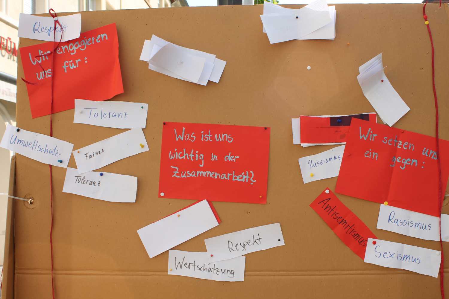 Einige meinten, gerade der rote Winkel sei zu kommunistisch, hatte man sich in den 90 er Jahren doch gerade erst an die neue Gesellschaftsordnung gewöhnt. Die Gründer sahen das jedoch völlig anders und viele sagten auf Grund dieser Meinung aus der Bevölkerung: Nun machen wir erst recht mit und weiter. Denn mit dem roten Dreieck wurden zur Nazizeit auch die politischen Häftlinge in den Konzentrationslagern gekennzeichnet. Unabhängig von ihrer Herkunft, Parteizugehörigkeit und Einstellung wurden sie auf Grund ihres antifaschistischen Widerstandes verhaftet, viele von ihnen überlebten das KZ nicht. So sieht das Infocafe mit seinen Mitstreitern es auch heute wieder als notwendig an, Zivilcourage gegen den Rechtsextremismus zu zeigen. Nachdem endlich eine Firma gefunden wurde, welche die Winkel produziert, sind diese wieder im Infocafe erhältlich. Auf der Feier bekam jeder Anwesende einen solchen als Geschenk.