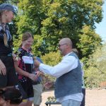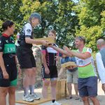 Auf dem Burghof der Burg Eisenhardt, die Start- und Zielpunkt war, wurden erste Eindrücke ausgetauscht. Eine schöne Strecke – darin waren sich alle einig. Zur Siegerehrung gab es neben den Pokalen noch etwas Besonderes. Die Bäckerei hatte für jeden, der auf dem Podest landete, eine Torte gebacken. Bei den Frauen waren nur 4 Teilnehmerinnen am Start. Gewonnen hat Sam Sandten, eine Multiathletin aus Südbrandenburg vor Susan Frank aus Altlandsberg und Nadine Klein aus Berlin. Die Fahrzeit der Siegerin betrug 1 Stunde und 35 Minuten. Daran zeigte sich, dass die Frauen den Männern in nichts nachstehen, denn auch die besten Männer fuhren ähnliche Zeiten.