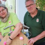 Am Marktplatz wartete die Handarbeitsgruppe der Stadt sehnsüchtig auf Helfer. Sie wollen ihre Verbundenheit mit der Stadt auf besondere Weise zeigen. „Wir nennen es ein Herz für Bad Belzig“, so Klaus Benke. Dazu wurde ein großes Holzherz angefertigt, welches mit Pompons gefüllt werden soll. Wer erinnert sich nicht noch, als Kind selbst diese Bommeln angefertigt zu haben, damals mit Schablonen aus Pappe. Heute gibt es diese aus Plaste zu kaufen. Auf ihren Veranstaltungen wird nun dieses Herz dabei sein in der Hoffnung, dass viele helfen, es zu gestalten. „Dann wollen wir es der Stadt übergeben“, so Klaus Benke.