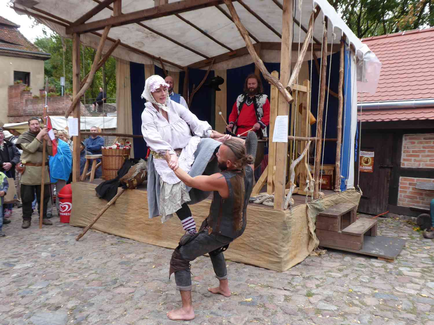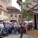 Raben. Um die Mittagszeit hatte sich das Gelände der Burg Rabenstein schon gut gefüllt. Alle warteten gespannt auf den Einmarsch der Gaukler zum diesjährigen Rabensteiner Herbst. Als diese durch das große Tor Einzug hielten, wurden sie mit großem Hallo empfangen. Allen voran Arne Feuerschlund mit seiner Gisela (einem Steckenpferd) im Gepäck bzw. auf dem Kinn mit den Komödianten von Pampatut, den Rapauken und vielen Rittern.
