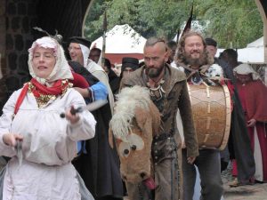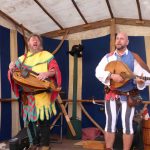 Dann waren endlich „Pampatut“ an der Reihe. Sie gehören schon fast zum Urgestein der Mittelalterveranstaltungen in Raben. Schon während der Begrüßung der Zuschauer zeigte Holger Hoffmann sein komödiantisches Talent und dass man auch ohne Alkohol wie ein Betrunkener aussehen kann. Er ist einer der professionellsten und vielseitigsten Spielmänner Deutschlands. Gemeinsam mit Max von Gluchowe bildet er ein Duo, das man gehört und gesehen haben muss. Mit ihrem lockeren Mundwerk sind sie von Mittelaltermärkten nicht wegzudenken. Und auch auf Rabenstein waren sie nicht das erste Mal zu Gast.