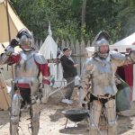 Auf dem Gelände der Burg gab es aber noch viel mehr zu sehen. Vor allem konnte man selbst versuchen, mit welchen Waffen man damals gekämpft hat. Besonders das Bogenschießen war an vielen Ecken beliebt. Die Mannen um Christian Weichhold aus Dessau sind schon lange dabei, ihr erster Markt war bereits 2004. Das war damals der 2. Rabensteiner Herbst. Und sie waren sofort „infiziert“ und sind seitdem immer wieder dabei. „Es macht einfach Spaß“, so Christian Weichhold, “man geht sozusagen auf eine Zeitreise und kann dem Alltag entfleuchen“ und erklärt nebenher die Handhabung von Pfeil und Bogen. Das hatte auch Willi sehr schnell begriffen, der gerade mit seinen Eltern Urlaub in Wahlsdorf macht. Diese hatten dort einen Flyer entdeckt und sich spontan auf den Weg nach Raben gemacht.