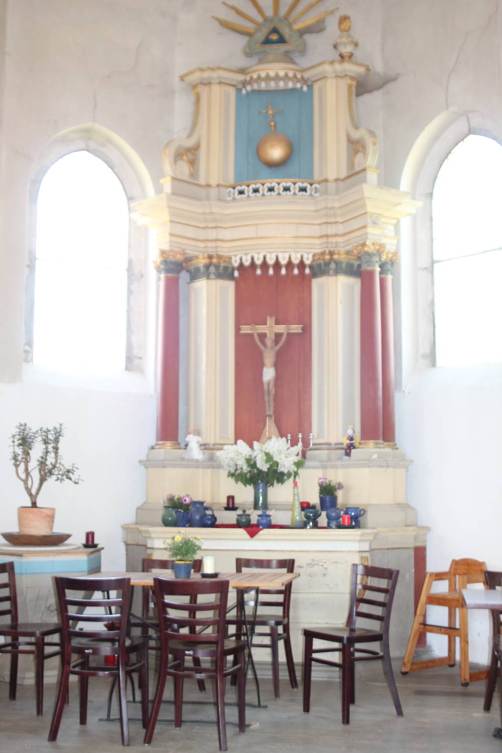 Die alte Scheune hatte ihren ganz eigenen Charme, vor allem aber konnte man weiter arbeiten. Das war vor allem für die Bewohner wichtig, die sich Hilfe erhofften und über die Arbeit in Töpferei und Café wieder an ein normales Leben herangeführt werden sollten. Die Zusammenarbeit funktionierte gut, so dass van Schoonhoven an Scarabäus herantrat und fragte: „Wollt ihr nicht auf dem Gutshof bleiben? Ich sorge für die Renovierung der Gebäude.“ So begann eine große Bau- und Sanierungsaktion mit viel Papierkrieg, da auch der Denkmalschutz ein Wort mitzureden hatte. Als erstes war die Töpferwerkstatt an der Reihe, dort konnte man bereits im Februar 2017 einziehen. Jetzt musste ein Ausweichquartier für das Café gefunden werden. Für den Zeitraum der Renovierung nutzte man dazu die kleine Kirche.