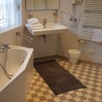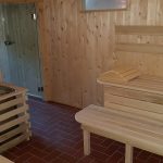 Im Erdgeschoß steht eine Sauna für bis zu 8 Personen zur Verfügung, in der man auch in der kalten Jahreszeit wunderbar entspannen kann. Der Gemeinschaftsraum „Turmzimmer“ in dessen Mitte ein riesiger Tisch aus Altholz prangt, kann für Seminare oder auch Familientreffen genutzt werden. An diesem Wochenende wird sich hier eine Frauentruppe zum gemeinschaftlichen Nähen treffen. Wobei- bei dem schönen Wetter werden die Nadeln vielleicht auf dem großen Tisch im Vorgarten durch die Stoffe flitzen.