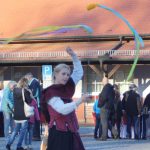 Auf dem Platz waren besonders die Kinder begeistert vom Kinderkarussell. Zur damaligen Zeit musste der Schausteller noch richtig Muskeln haben, denn das Gerät wird mit einem Schwungrad betrieben. Die Jongliergruppe tanzte mit bunten Bändern, viele Gäste beteiligten sich ganz spontan und versuchten, sich nicht zu verheddern. Einer der Höhepunkte war der Auftritte von Ralf dem Raben, bekannt durch die Mittelaltergruppe „Die Rabenbrüder“ und seinen vielen Auftritten auf Burg Rabenstein.
