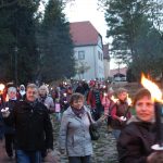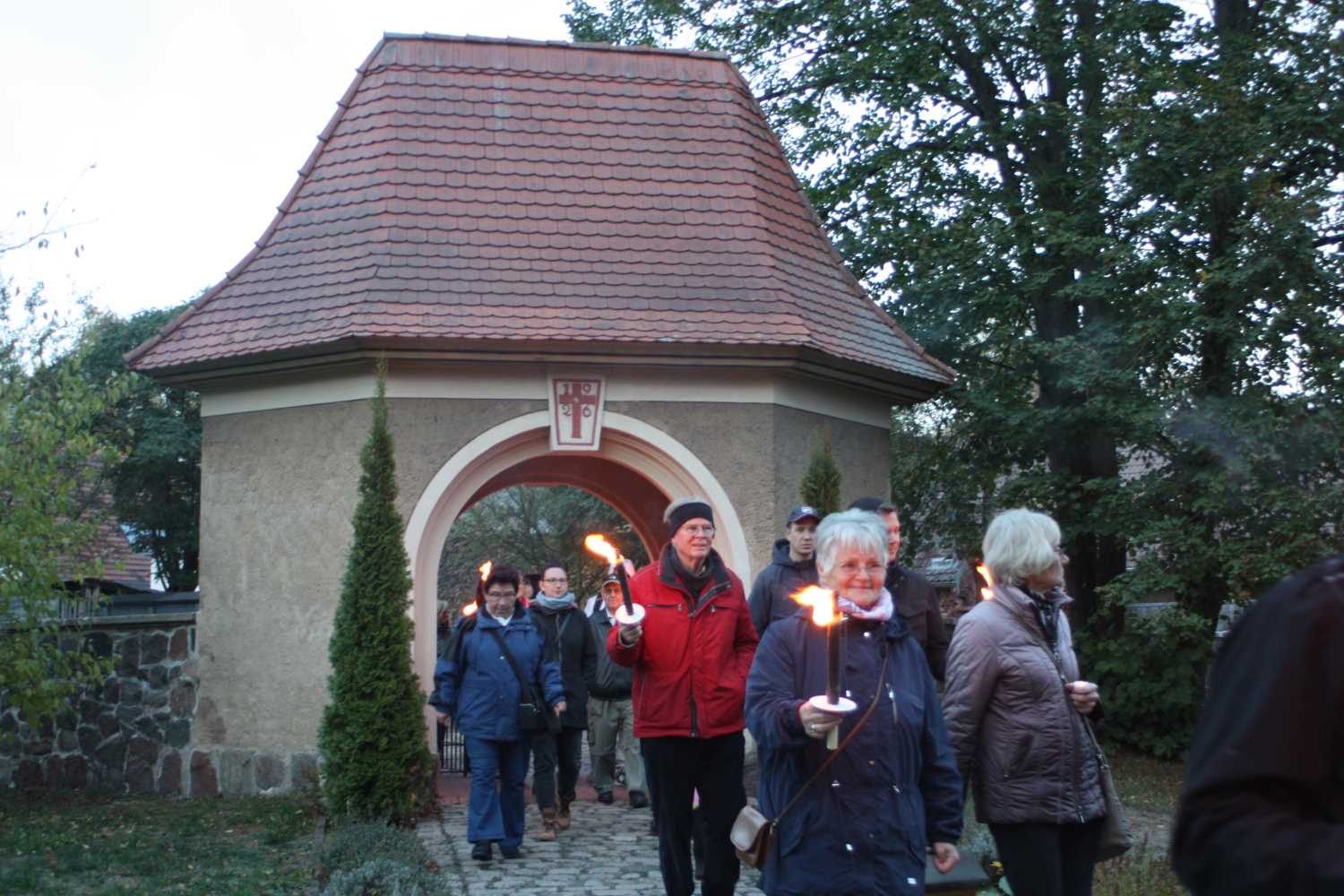 Ralf der Rabe begleitete schließlich auch den Fackelumzug zur Kirche, in der ein feierlicher Gottesdienst stattfand.