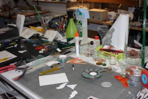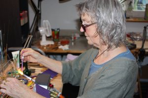 Iris Seraphin hat ihre kleine Werkstatt in der Alten Schule in Wiesenburg. Auf vielen Tischen liegen bunte Glasteile verteilt, auf anderen fertige Produkte zum anschauen. Iris Seraphin ist in Berlin geboren. Viele Jahre hat sie an der deutschen Oper als Maskenbildnerin gearbeitet. Dazu musste sie zuerst Friseurin lernen, das war damals Voraussetzung für den Beruf. Sechs Jahre Ausbildung bedurfte es. Nach der Wende wurde ihr die Großstadt zu viel. Da sie im westlichen Teil Berlins aufgewachsen war, gab es für sie sozusagen kein Umland, in das man fahren konnte, um mal auszuspannen. Deshalb verließ sie im Jahr der Jahrtausenwende Berlin und lebte erst in Nordrhein-Westfalen. Aber als Großstadtkind fehlte ihr irgendwie die Nähe zu Berlin und sie suchte ein neues Zuhause in der Nähe. So kam sie in den Fläming, lebte erst in Bad Belzig und seit nunmehr 14 Jahren in Wiesenburg. „Der Fläming war so ein Stück nach Hause kommen“, sagt sie. Es ist nur eine Stunde bis Berlin und wenn sie mal Sehnsucht nach der Stadt hat, ist sie ruck zuck da. Meist passiert das aber nur aus beruflichen Gründen.