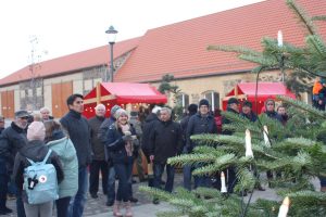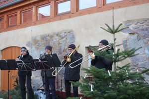 Aber natürlich gab es auch weihnachtliches auf dem Hof. Bei knappen Minustemperaturen fanden viele den Weg zum Glühweinstand und zu den frisch gebackenen Waffeln. Im erst in diesem Jahr eröffneten Töpfercafe konnte man sich aufwärmen, der Hofladen und die Töpferei hatten ebenfalls geöffnet. Einzig und allein das Bläserquartett der Brandenburger Symphoniker hatte es nicht so leicht. Den Musikern wurden schnell die Finger kalt, da sie auf der kleinen Bühne auf dem Hof spielten.