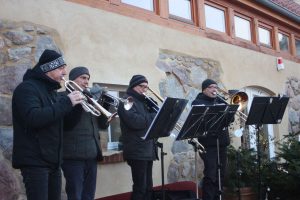 Aber natürlich gab es auch weihnachtliches auf dem Hof. Bei knappen Minustemperaturen fanden viele den Weg zum Glühweinstand und zu den frisch gebackenen Waffeln. Im erst in diesem Jahr eröffneten Töpfercafe konnte man sich aufwärmen, der Hofladen und die Töpferei hatten ebenfalls geöffnet. Einzig und allein das Bläserquartett der Brandenburger Symphoniker hatte es nicht so leicht. Den Musikern wurden schnell die Finger kalt, da sie auf der kleinen Bühne auf dem Hof spielten.