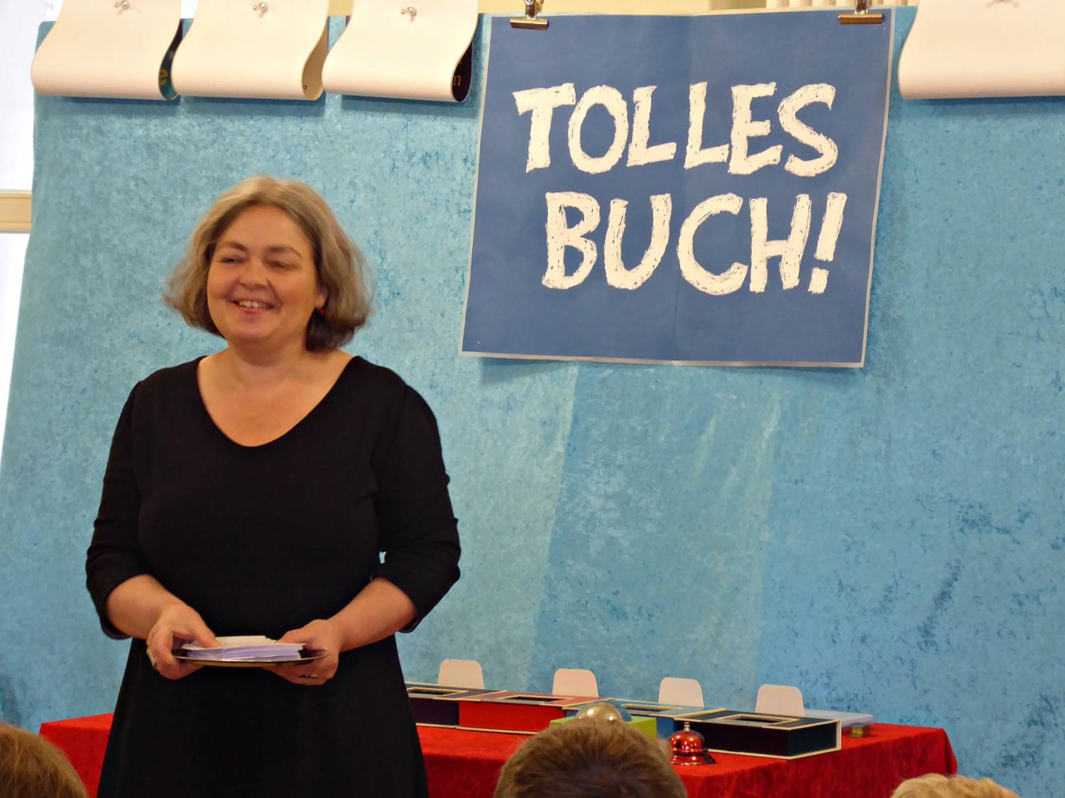 Den ganzen Tag lesen kann und muss sie nun. Seit 2007 reist Tina Kemnitz durch die Lande, um Kinder zum Lesen zu animieren. Dazu muss sie natürlich die vorgestellten Bücher gelesen haben. Für Wiesenburg hatte sie sechs tolle Bücher ausgesucht, die sie den Grundschülerinnen und -schülern ans Herz legen wollte. In ihrer unnachahmlichen und lustigen Art bewegte sie die Kinder von der ersten Minute an. Nicht zuletzt, um ihnen Ratschläge zu geben, wie sie an ihr Lieblingsbuch kommen. Denn es könnte ja sein, dass es bei Bibliothekarin Irina Seeger gerade vergriffen ist. „Seid einfach ganz charmant zu Euren Eltern, räumt freiwillig auf, deckt den Tisch und helft bei vielen Arbeiten“, riet Tina Kemnitz schmunzelnd, „dann kaufen Euch eure Eltern vielleicht das Buch.“