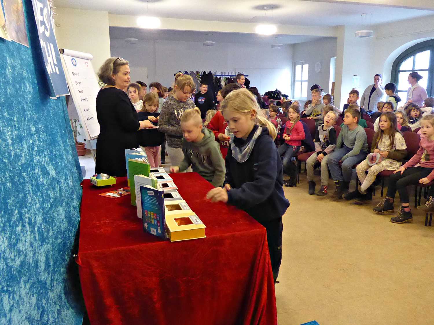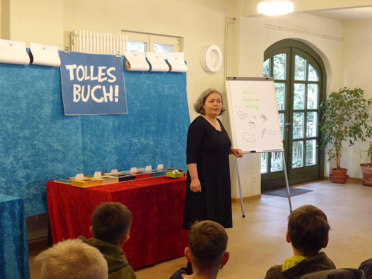 Gespannt warteten die Kinder auf die Vorstellung der Bücher. Tina Kemnitz verstand es, sie mit Fragen einzubinden und auf das Buch vorzubereiten. Das begeisterte die Kinder, und sie meldeten sich bestimmt viel öfter als im Unterricht. Vorgestellt wurden, immer mit einer kleinen Leseprobe,: