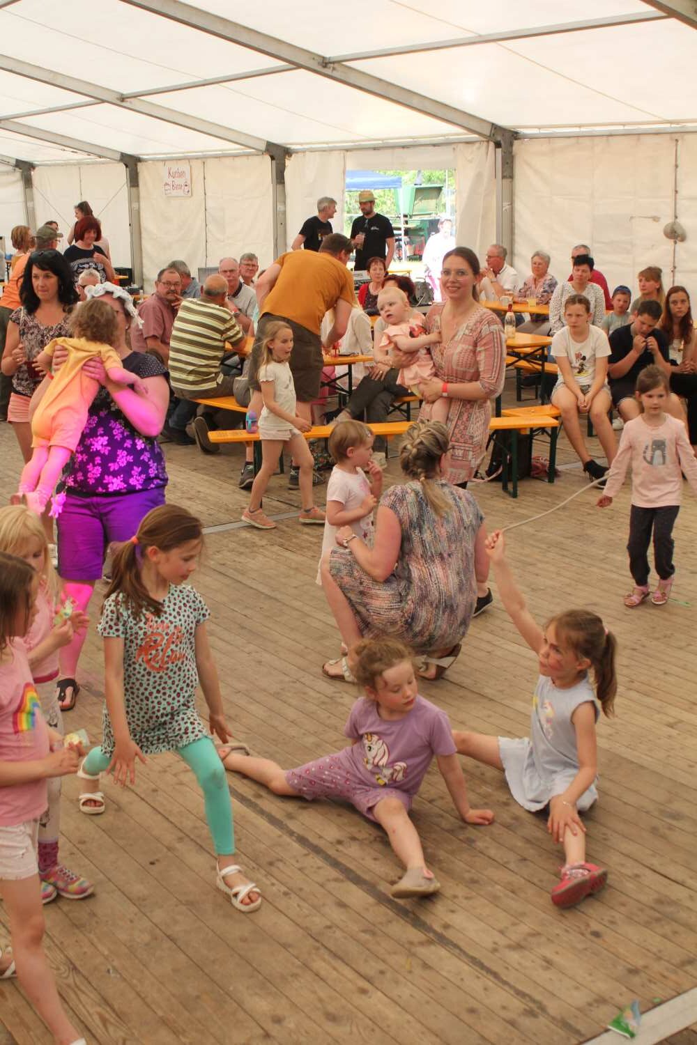 Der Sonntag begann mit einer Andacht und anschließender Blasmusik mit den Märkischen Dorfmusikanten aus Wittbrietzen. Daran hatten besonders die Rentner ihre Freude, und die waren zahlreich erschienen. Fleißige Bäckerinnen sorgten für viele unterschiedliche Kuchen. Besonders aufgeregt waren die Kinder. „Wann können wir endlich unser Schlafzeug anziehen“, quengelten viele schon Stunden vor Beginn. Als es endlich losging mit dem Kinderbettenball, waren die Kleinen nicht mehr zu halten. Aufgelockert wurde alles mit kleinen Spielen. Aber am meisten begeistert hatte alle ein kleines Programm von einigen sechs- bis zehnjährigen Mädchen. Diese hatten sich auf einer Familienfeier getroffen und sich dabei ein kleines Programm mit Liedern und Tänzen ausgedacht. Ohne irgendwelches Lampenfieber traten die Mädchen auf und ernteten tosenden Applaus. Der Nachwuchs für zukünftige Veranstaltungen steht also schon in den Startlöchern.