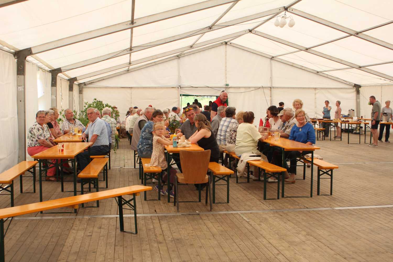 Bereits am Donnerstag vor Pfingsten begannen die Vorbereitungsarbeiten am Sportplatz. „Da waren bestimmt 50 Leute“, berichtete Janine Haseloff stolz. Samstagvormittag ging es auf dem Dorfplatz und der Festwiese weiter. Nachmittags wurde die Pfingstmaie aufgestellt. Sie gehört mit 24,75 m wohl zu den größten rund um Bad Belzig und ist schon von weitem zu sehen. So war das Aufstellen auch nicht ganz so einfach, es dauerte immerhin fast zwei Stunden.