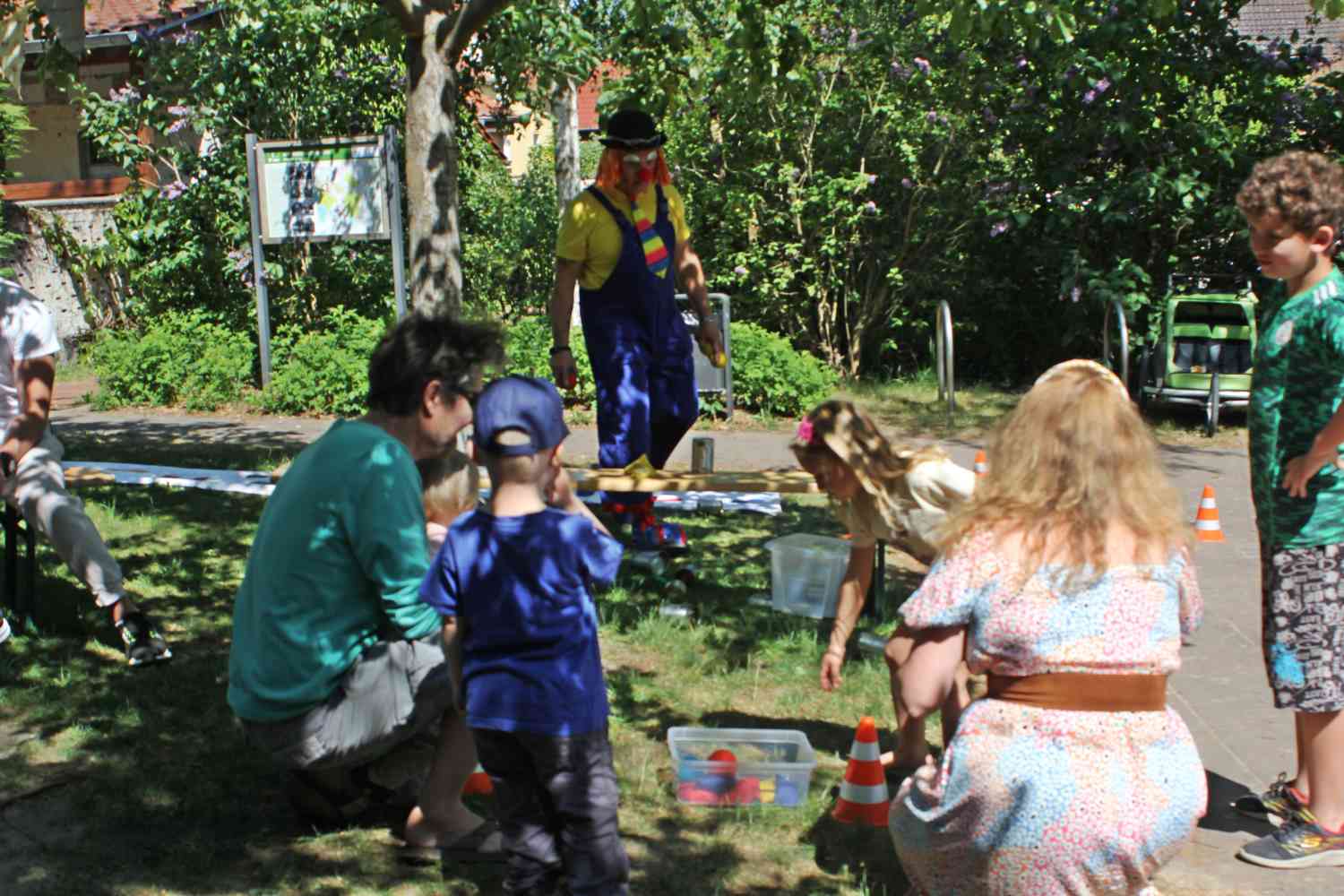 Unterstützt wurden die Mitarbeiter dabei vom Schulförderverein, Bibliothekarin Irina Seeger und Clown Steppi aus Bad Belzig. „Mein Vater hat mich früher immer so genannt“, schmunzelt Steffen Reichhardt aus Bad Belzig. Neben seinem Beruf begeistert er nun Kinder auf Dorffesten, Kindergeburtstagen, Einschulungen und anderen Festlichkeiten. Bei kleinen Spielen animierte er die Kinder zum aktiven mitmachen.