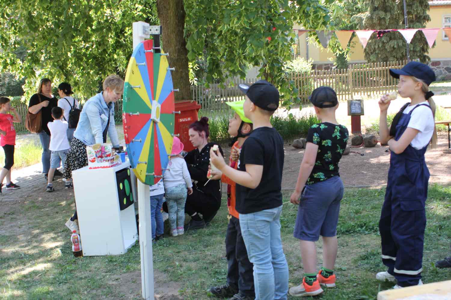 Andrang herrschte immer beim Glücksrad, vielleicht, weil es da kleine Preise zu gewinnen gab. Die wären jedoch ohne Sponsoren nicht drin gewesen. „Wir möchten uns deshalb bei der Sparkasse Wiesenburg, der VR Bank Bad Belzig und dem Landkreis für die Unterstützung bedanken“, so Tina Wawrzyniak und Denise Schumann vom Familienzentrum.