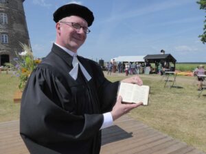 Niemegk. Was hat Pfingsten mit der Mühle zu tun? Warum erklingt beim Gottesdienst an der Niemegker Mühle zu Pfingsten eine Weihnachtsmelodie? Pastor „Neunmalklug“ Daniel Geißler weiß die Antwort. Zum Mühlentag hält er traditionell einen Freiluftgottesdienst ab.