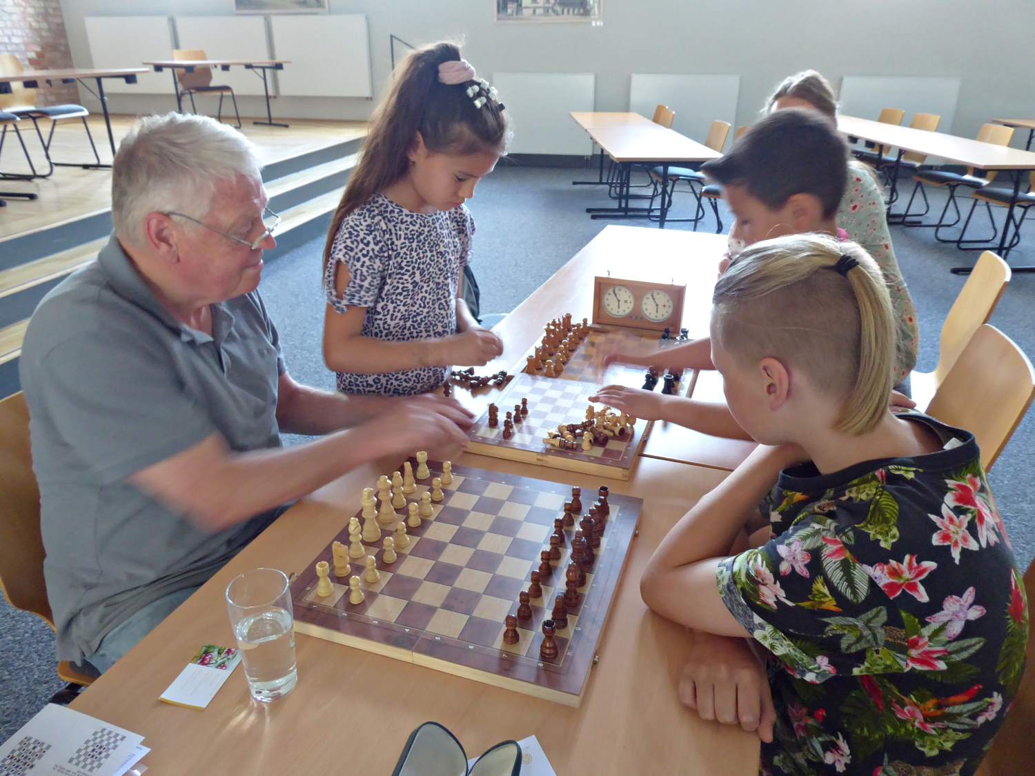 In Vorbereitung der Eröffnung des neuen Jugendraums an der Wiesenburger Grundschule hatte sich Luisa Klöhn vom Familienzentrum umgesehen, was es noch nicht gibt. Einige Kinder sagten, dass sie gern Schach spielen würden. Vor vielen Jahren gab es sogar schon mal eine Schach AG. Mit Wolfgang Fuhrmann hatte sie eigentlich wegen möglicher Nachhilfe gesprochen, aber der wollte den Kindern lieber Schach spielen beibringen. Aber er wollte das mit ein bisschen Abstand zum Schulgebäude machen. So trafen sich kürzlich interessierte Kinder zur ersten Übungsstunde im Familienzentrum.