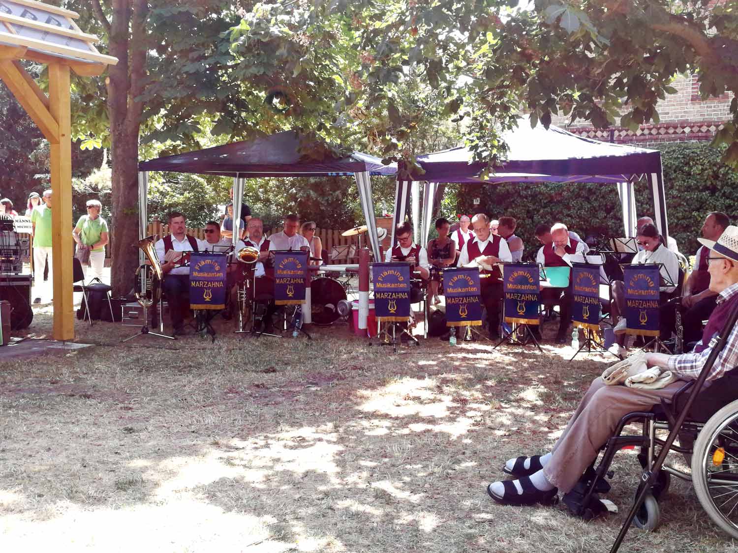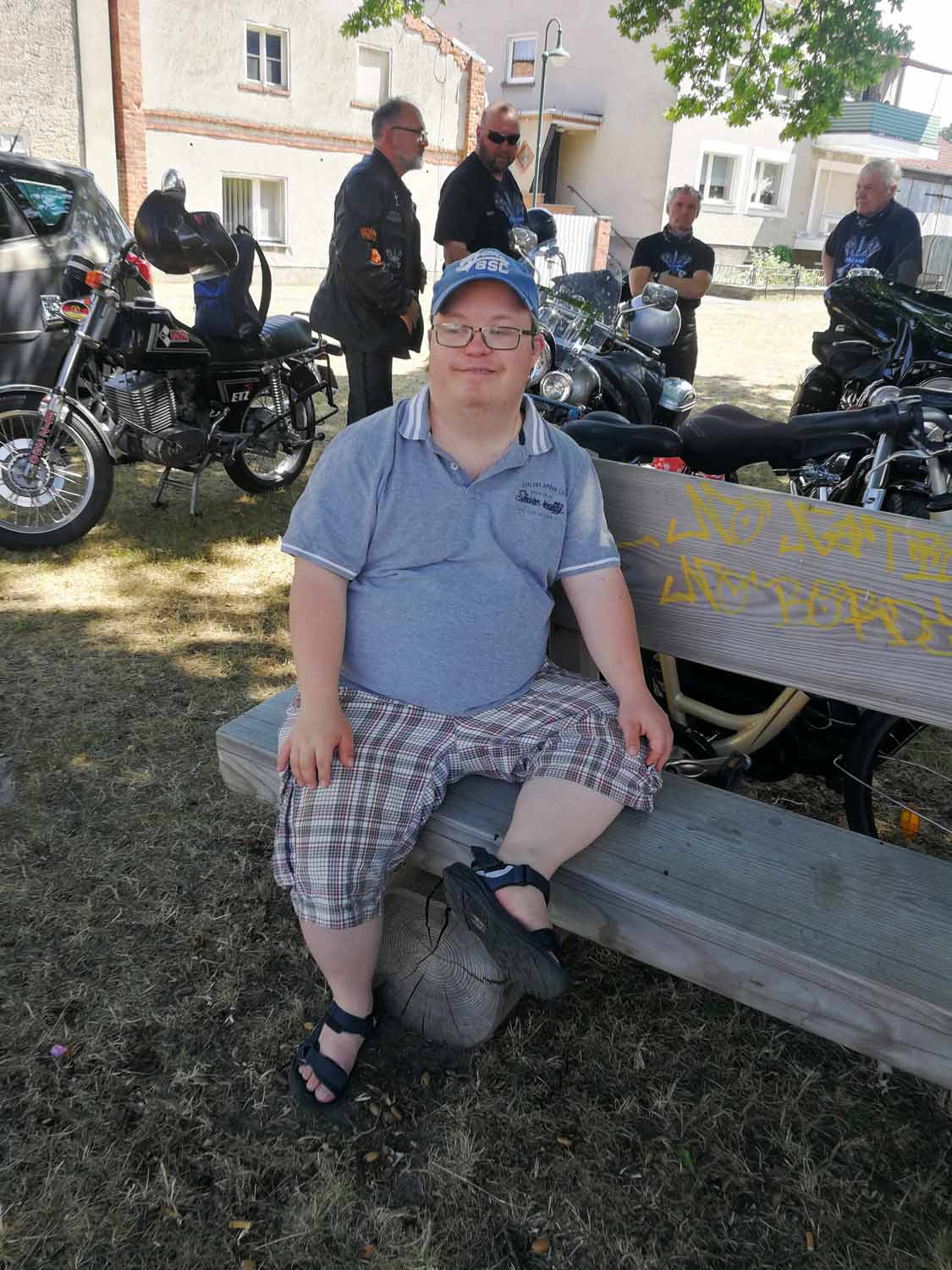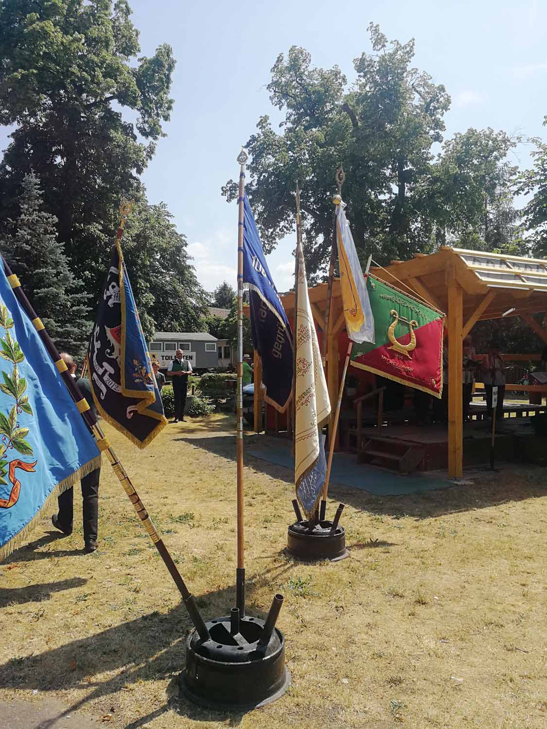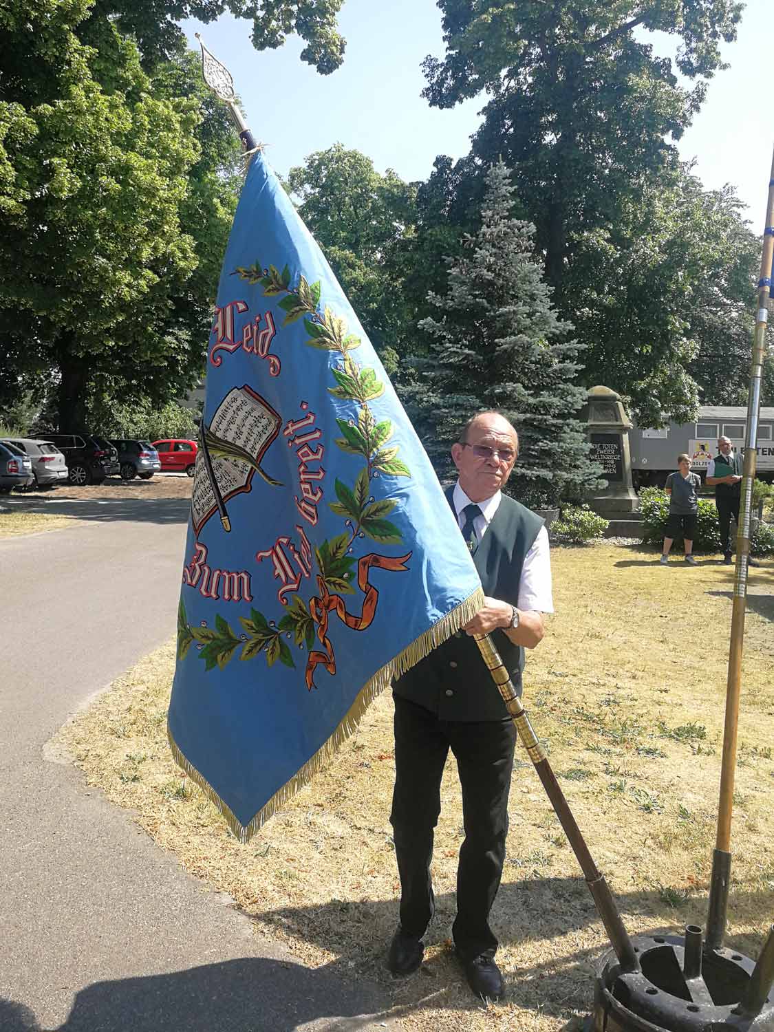 Der Festtag am Sonntagnachmittag (11.06.2023) begann mit einem Umzug von der Feldstraße zum Kastanienwinkel. Als die Straße dafür gesperrt wurde, entschloss sich ein Zweirad-Oldtimer-Club aus Mecklenburg- Vorpommern zu einem Zwischenhalt. Die 50 Männer und Frauen genossen den Gesang und vor allem die kalten Getränke und die Bratwurst.