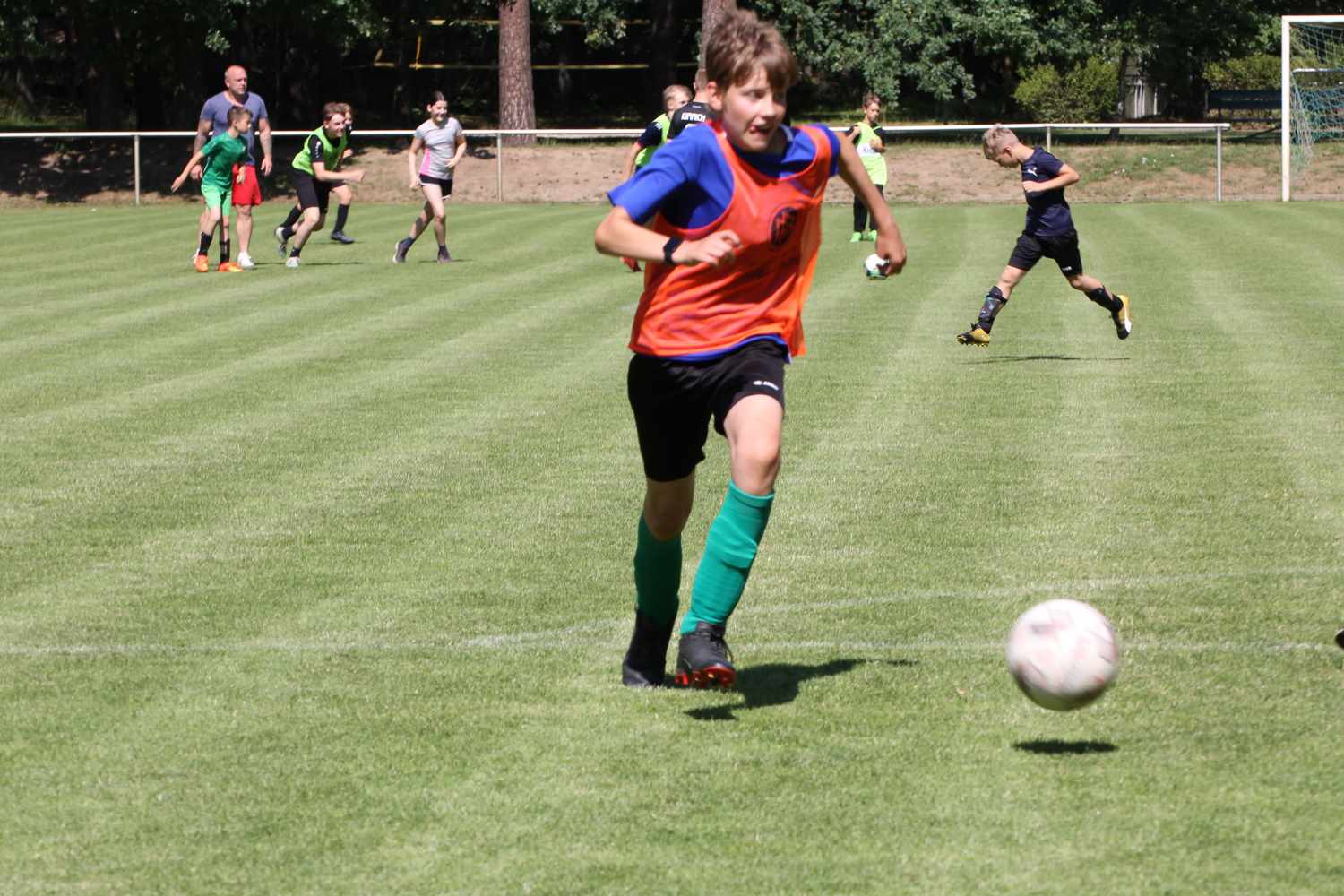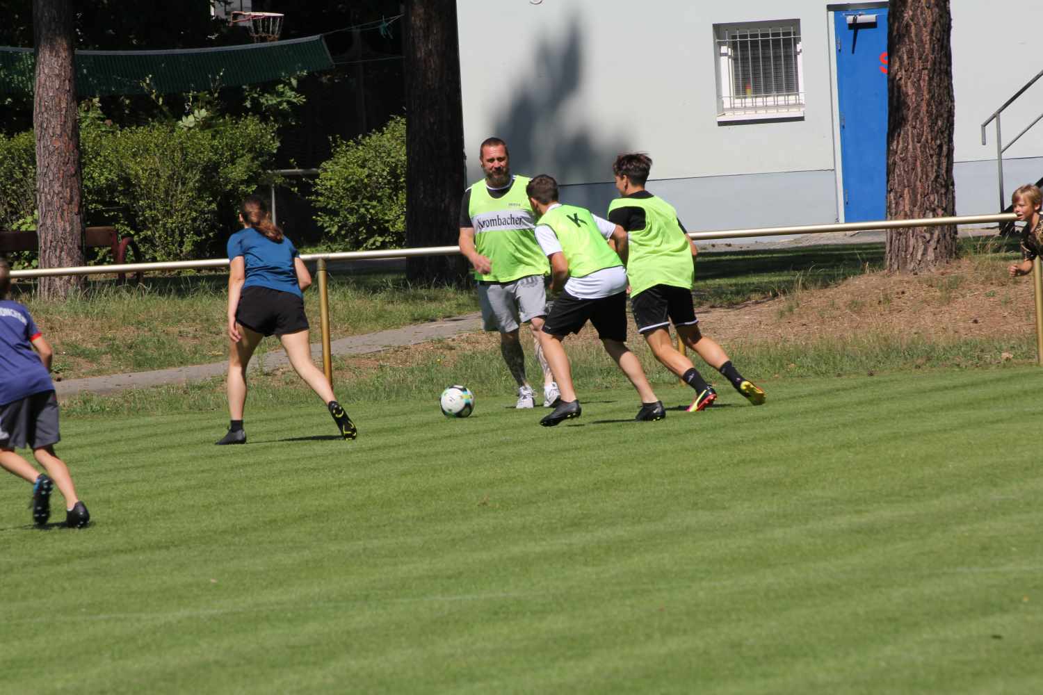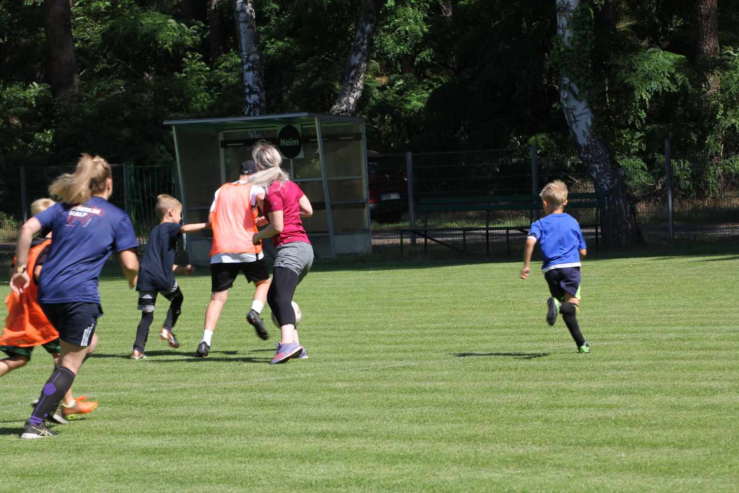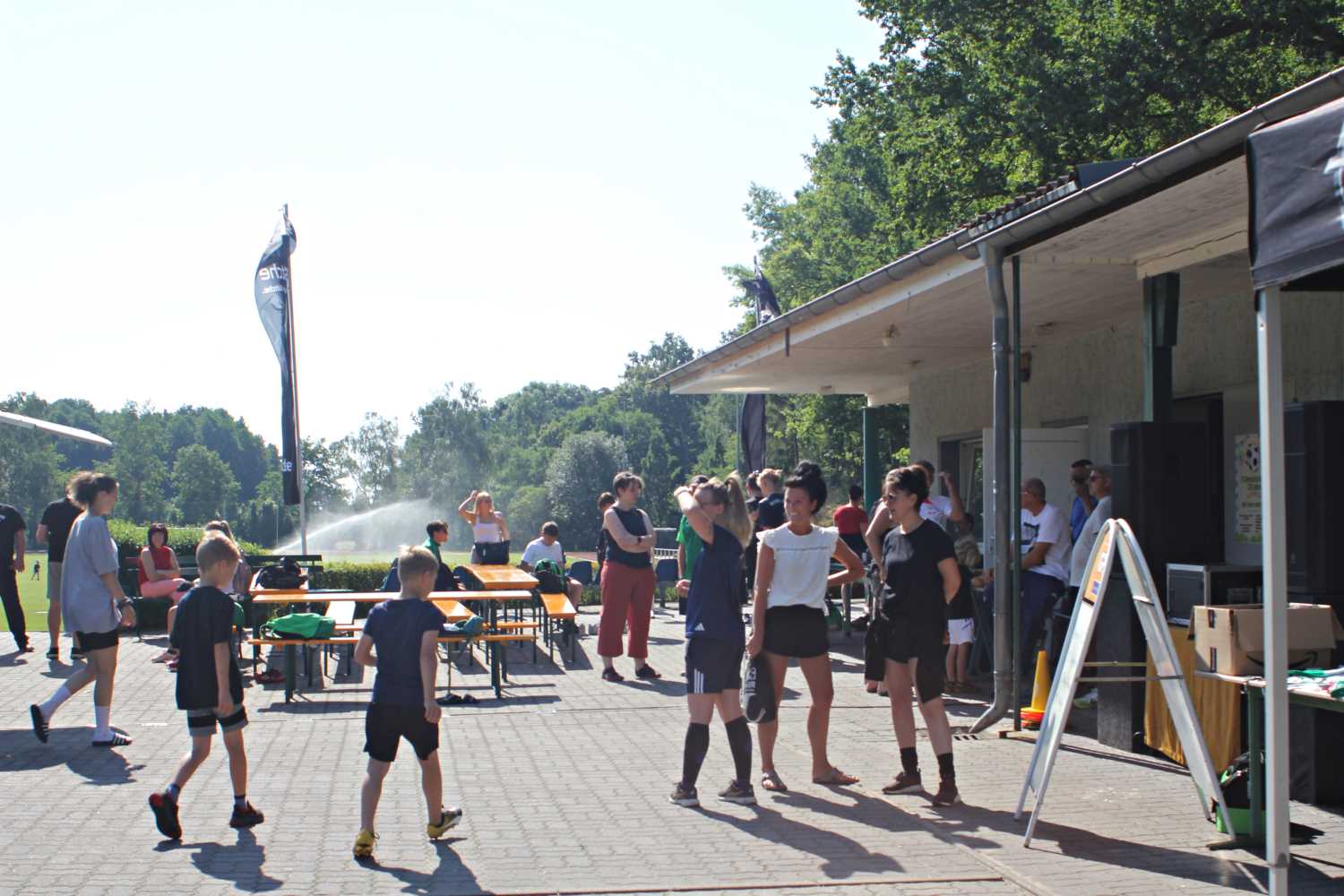 Aber gleichzeitig wurde natürlich auch Fußball gespielt. Eltern, Kinder und Gäste trafen sich zu einem Fun-Turnier. „Da werden gemischte Mannschaften gebildet, die dann gegeneinander antreten“, erklärte Christina Götze-Geue, der stellvertretende Vorstandsvorsitzende des Vereins. Dabei ging es nicht um Sieg oder Niederlage, sondern einfach um den Spaß am Fußball. Für die Kinder gab es dann aber doch Pokale zum Jubiläum. Für die Mannschaften wurden aus jeder Altersgruppe zwei Spieler ausgewählt, um ein bisschen Chancengleichheit zu wahren. So konnten insgesamt neun Mannschaften gebildet werden. Gespielt wurde auf den zwei Kleinfeldern gleichzeitig, jeweils 10 Minuten. Für die Spiele gab es aber noch besondere Regeln. So durften die über 18 jährigen und die B-Jugend ihre Tore nur per Kopfball erzielen, Tore der Frauen wurden doppelt gezählt. Ein Heidenspaß für alle. Die einzelnen Mannschaften gaben sich lustige Namen wie Blitzkicker, Stolpersteine oder Luftpumpen. Das Abschlussturnier am späten Nachmittag spielten die Alten Herren gegen PädMed, einem Zusammenschluss von Pädagogen und Ärzten der Stadt. Da hatten die Borussen jedoch nicht mit dem Können der Gegner gerechnet und verloren das Spiel.