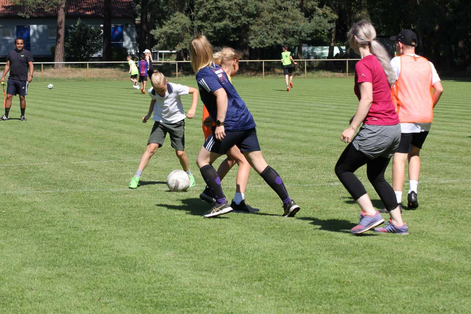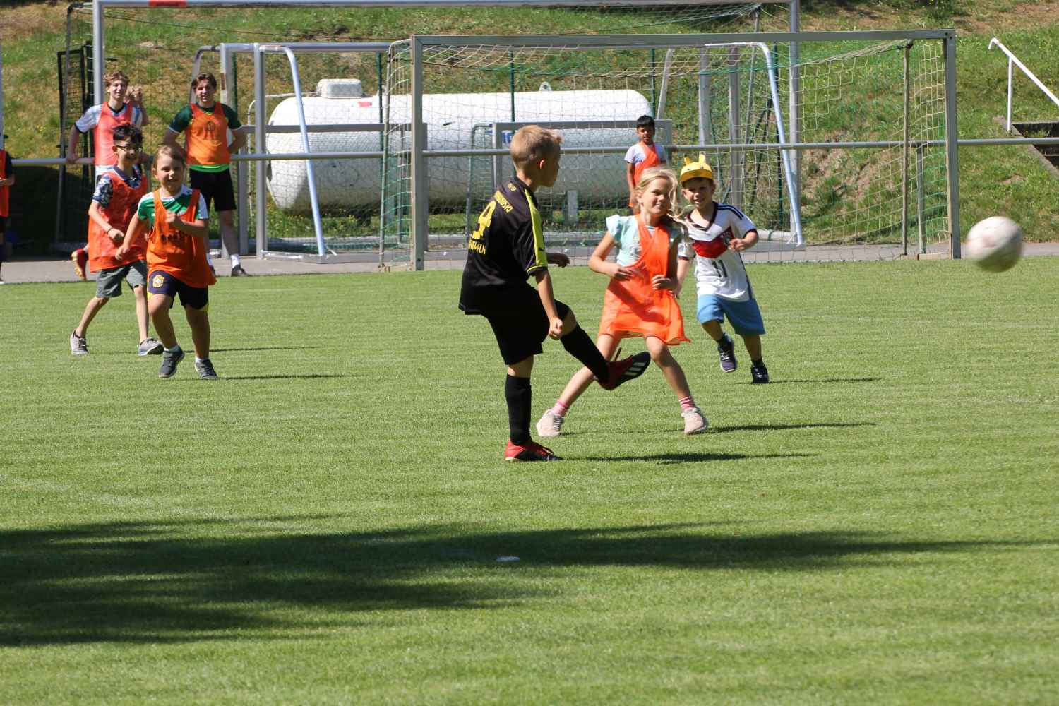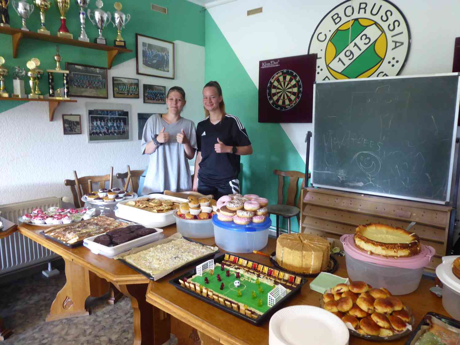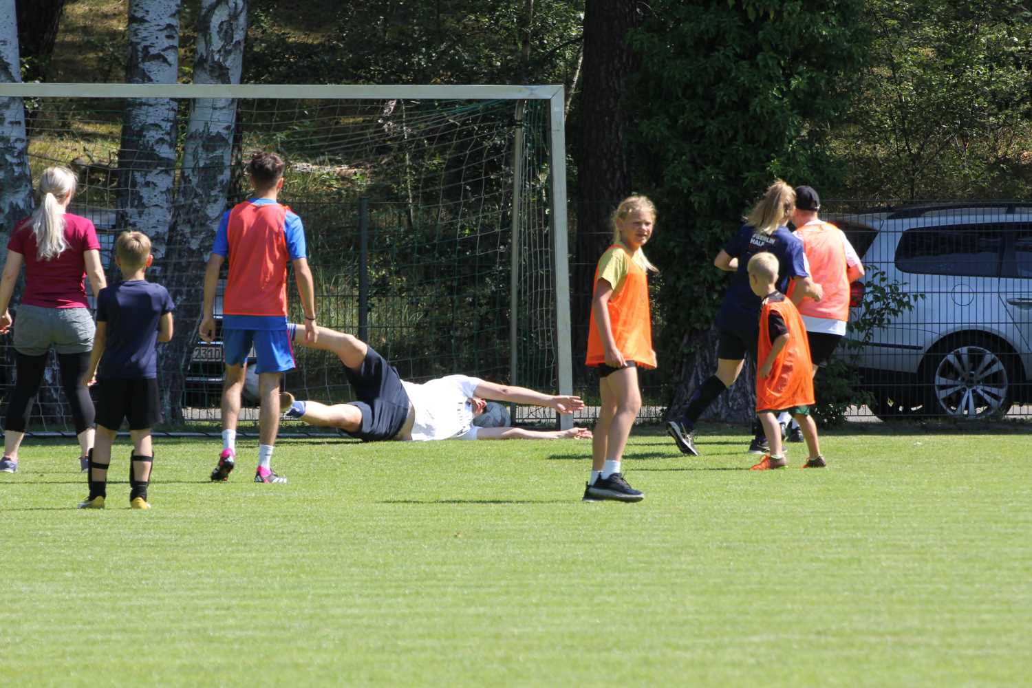 Aber gleichzeitig wurde natürlich auch Fußball gespielt. Eltern, Kinder und Gäste trafen sich zu einem Fun-Turnier. „Da werden gemischte Mannschaften gebildet, die dann gegeneinander antreten“, erklärte Christina Götze-Geue, der stellvertretende Vorstandsvorsitzende des Vereins. Dabei ging es nicht um Sieg oder Niederlage, sondern einfach um den Spaß am Fußball. Für die Kinder gab es dann aber doch Pokale zum Jubiläum. Für die Mannschaften wurden aus jeder Altersgruppe zwei Spieler ausgewählt, um ein bisschen Chancengleichheit zu wahren. So konnten insgesamt neun Mannschaften gebildet werden. Gespielt wurde auf den zwei Kleinfeldern gleichzeitig, jeweils 10 Minuten. Für die Spiele gab es aber noch besondere Regeln. So durften die über 18 jährigen und die B-Jugend ihre Tore nur per Kopfball erzielen, Tore der Frauen wurden doppelt gezählt. Ein Heidenspaß für alle. Die einzelnen Mannschaften gaben sich lustige Namen wie Blitzkicker, Stolpersteine oder Luftpumpen. Das Abschlussturnier am späten Nachmittag spielten die Alten Herren gegen PädMed, einem Zusammenschluss von Pädagogen und Ärzten der Stadt. Da hatten die Borussen jedoch nicht mit dem Können der Gegner gerechnet und verloren das Spiel.