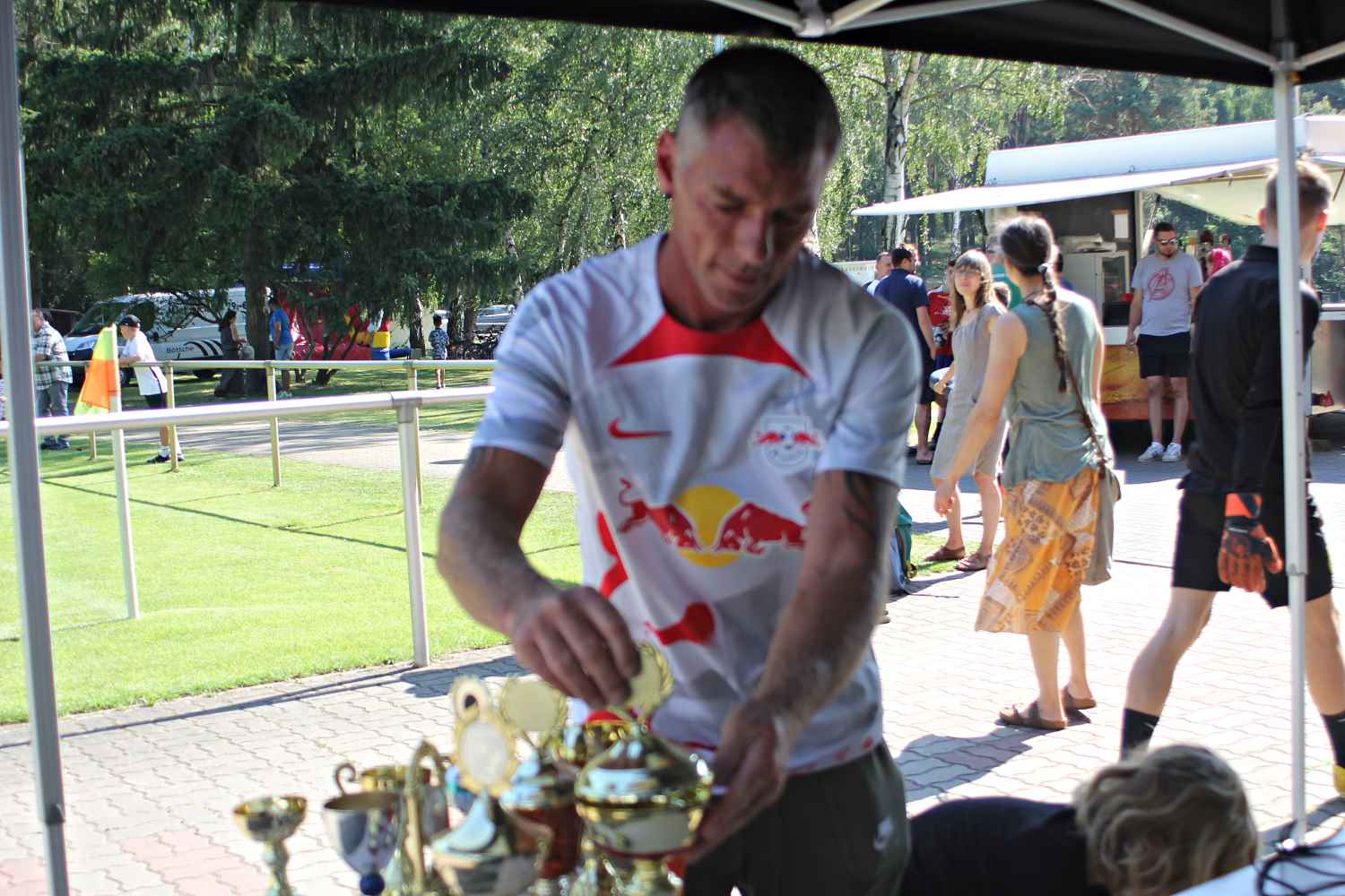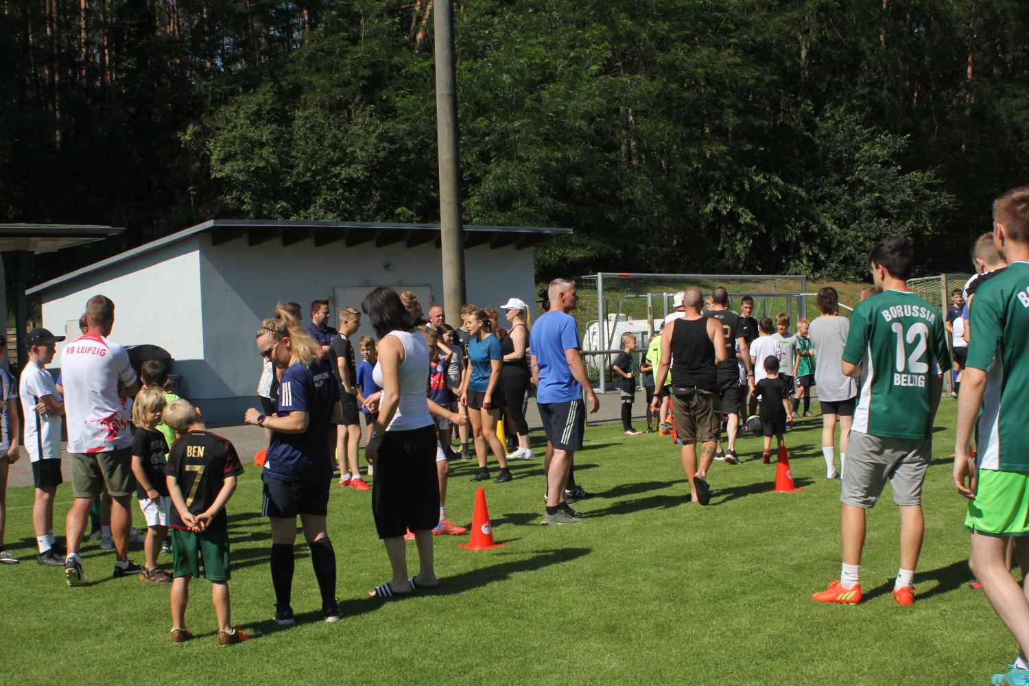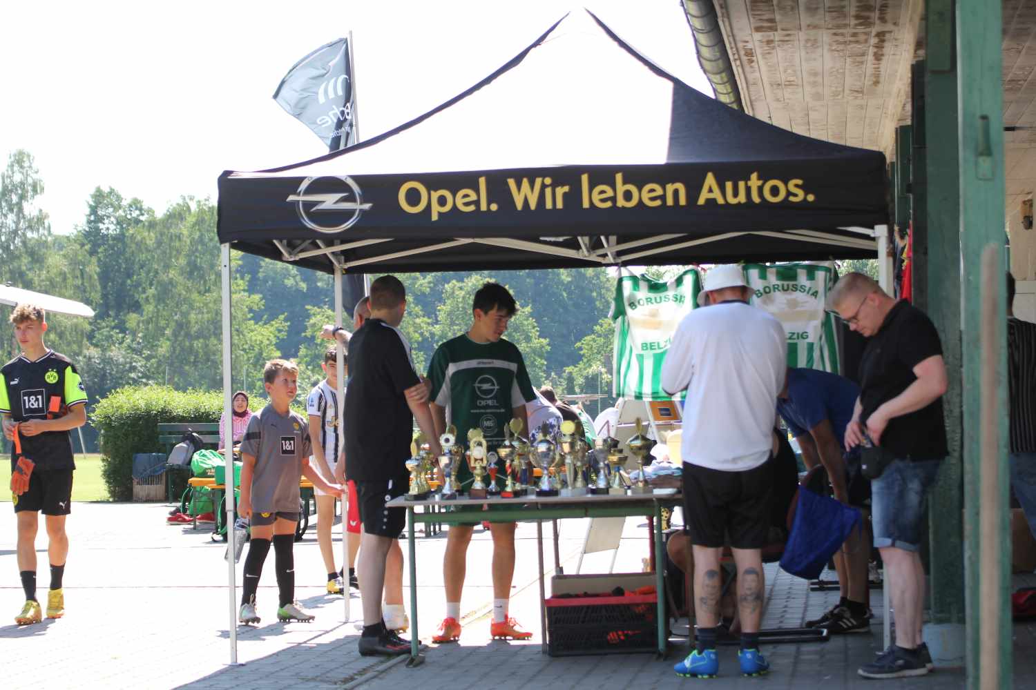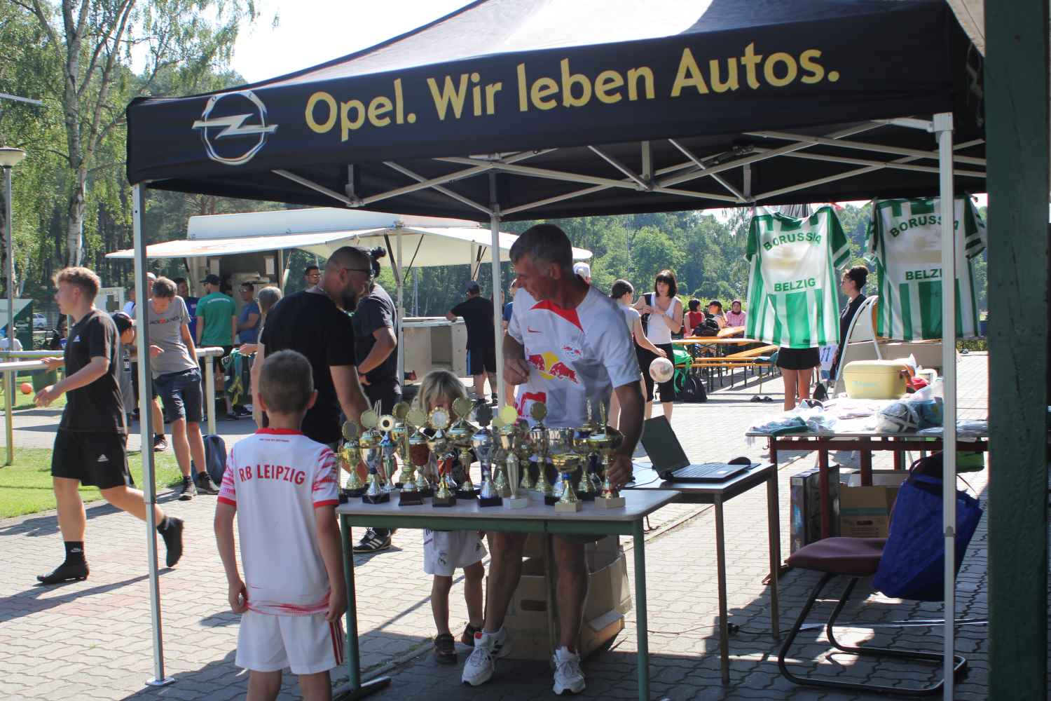 Während die Fußballer auf dem Rasen schwitzten, konnten es sich die Gäste gemütlich machen. Der Vereinsvorsitzende Marcel Thiele war für den Grill zuständig und brutzelte eine Wurst nach der anderen. Die Eltern hatten fleißig Kuchen gebacken. Für die Kinder stand eine Hüpfburg parat. Außerdem gab es eine Tombola. Die Preise dafür wurden von Firmen aus Bad Belzig gesponsert. „Der Erlös der Tombola fließt in die Jugendarbeit“ sagte Christian Götze-Geue. Denn Nachwuchsförderung ist ein ganz wichtiger Teil der Vereinsarbeit.