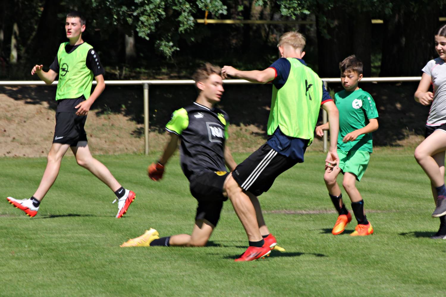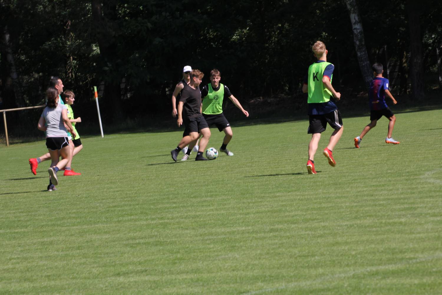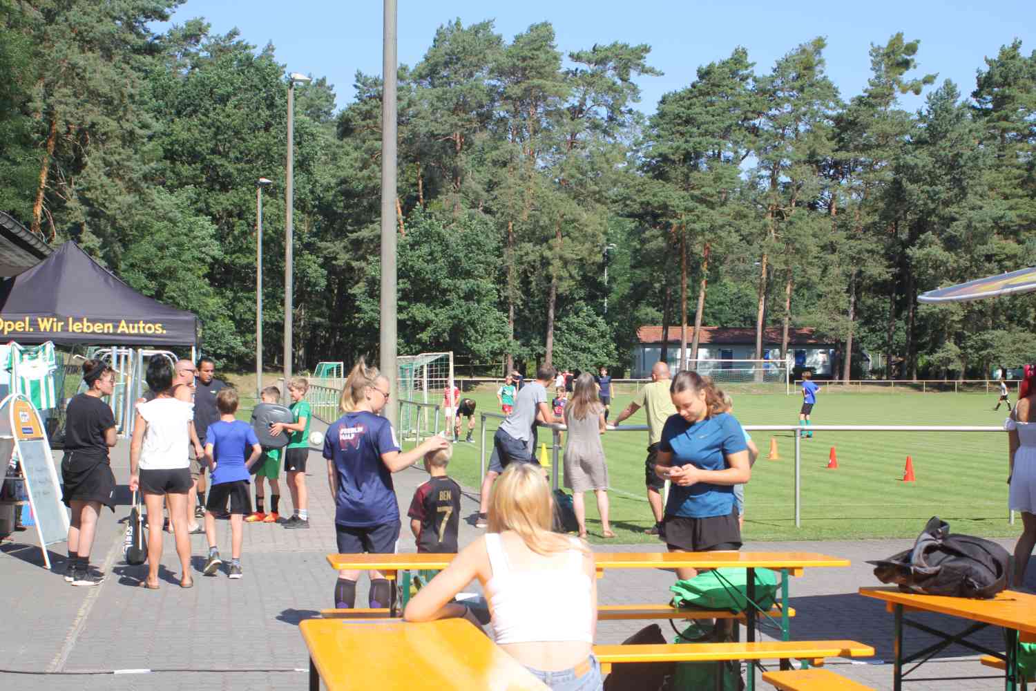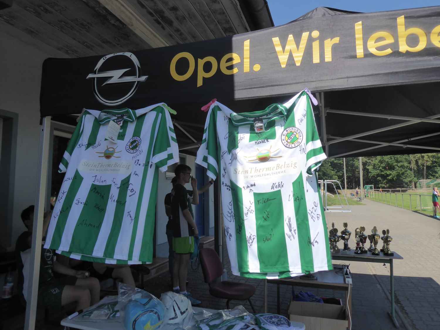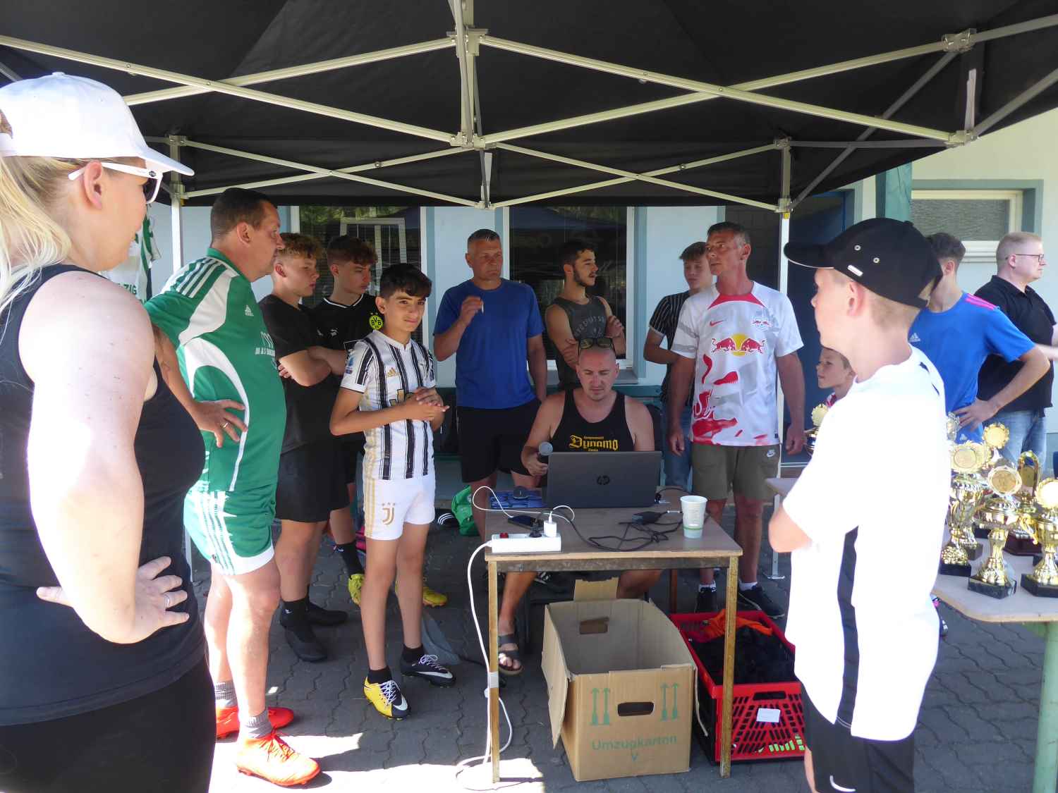 Während die Fußballer auf dem Rasen schwitzten, konnten es sich die Gäste gemütlich machen. Der Vereinsvorsitzende Marcel Thiele war für den Grill zuständig und brutzelte eine Wurst nach der anderen. Die Eltern hatten fleißig Kuchen gebacken. Für die Kinder stand eine Hüpfburg parat. Außerdem gab es eine Tombola. Die Preise dafür wurden von Firmen aus Bad Belzig gesponsert. „Der Erlös der Tombola fließt in die Jugendarbeit“ sagte Christian Götze-Geue. Denn Nachwuchsförderung ist ein ganz wichtiger Teil der Vereinsarbeit.