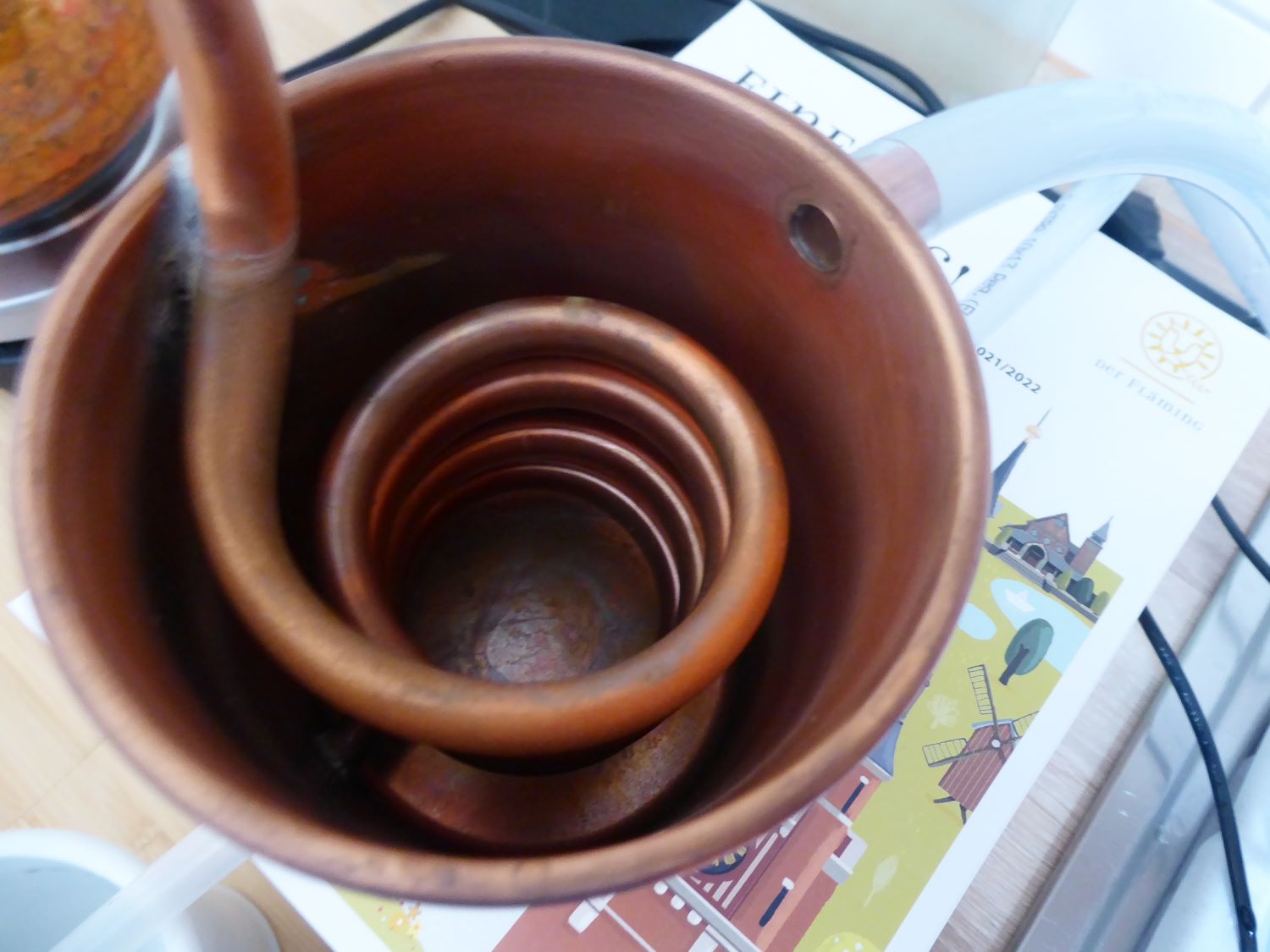 Dazu braucht man natürlich eine Anleitung. Gabi Sußdorf stellt in ihrer Fläminger Seifenmanufaktur seit Jahren Naturkosmetik her. Die neuste Kreation, die seit Dezember 2022 in Wiesenburgs Touristerei zum Kauf bereit liegt, ist eine Seife mit Extrakten des Wiesenburger Parkprinzesschens. Das ist eine Rose, die speziell für den Wiesenburger Schlosspark gezüchtet wurde. In diesem Rosensommer nun sollte der edle Extrakt – ein betörend duftendes Hydrolat – an zwei Workshopterminen in der Alten Schule Wiesenburg auch in eine Pflegecreme Einzug halten. Das Besondere war, dass die Teilnehmerinnen zusehen konnten, wie der Duftextrakt hergestellt wird. Dazu wurden, natürlich mit Erlaubnis von Parkleiter Ulrich Jarke, erst einmal Rosenblüten des Wiesenburger Parkprinzesschens gesammelt. Anschließend – nach einem schönen Spaziergang durch den Park zur Alten Schule – erklärte Gabi Sußdorf die Funktionsweise der Destille. Sie hat sich eine kleine 2 Liter-Kupferdestille zugelegt. Damit kann sie 500 ml Pflanzenhydrolat herstellen. Begeistert erzählte sie von geplanten privaten Destillationsversuchen – allem Möglichen kann man dufttechnisch auf die Spur kommen. Sie möchte in Zukunft auch mit Baumrinden, Erde und mit Essbarem, wie Schinken experimentieren.