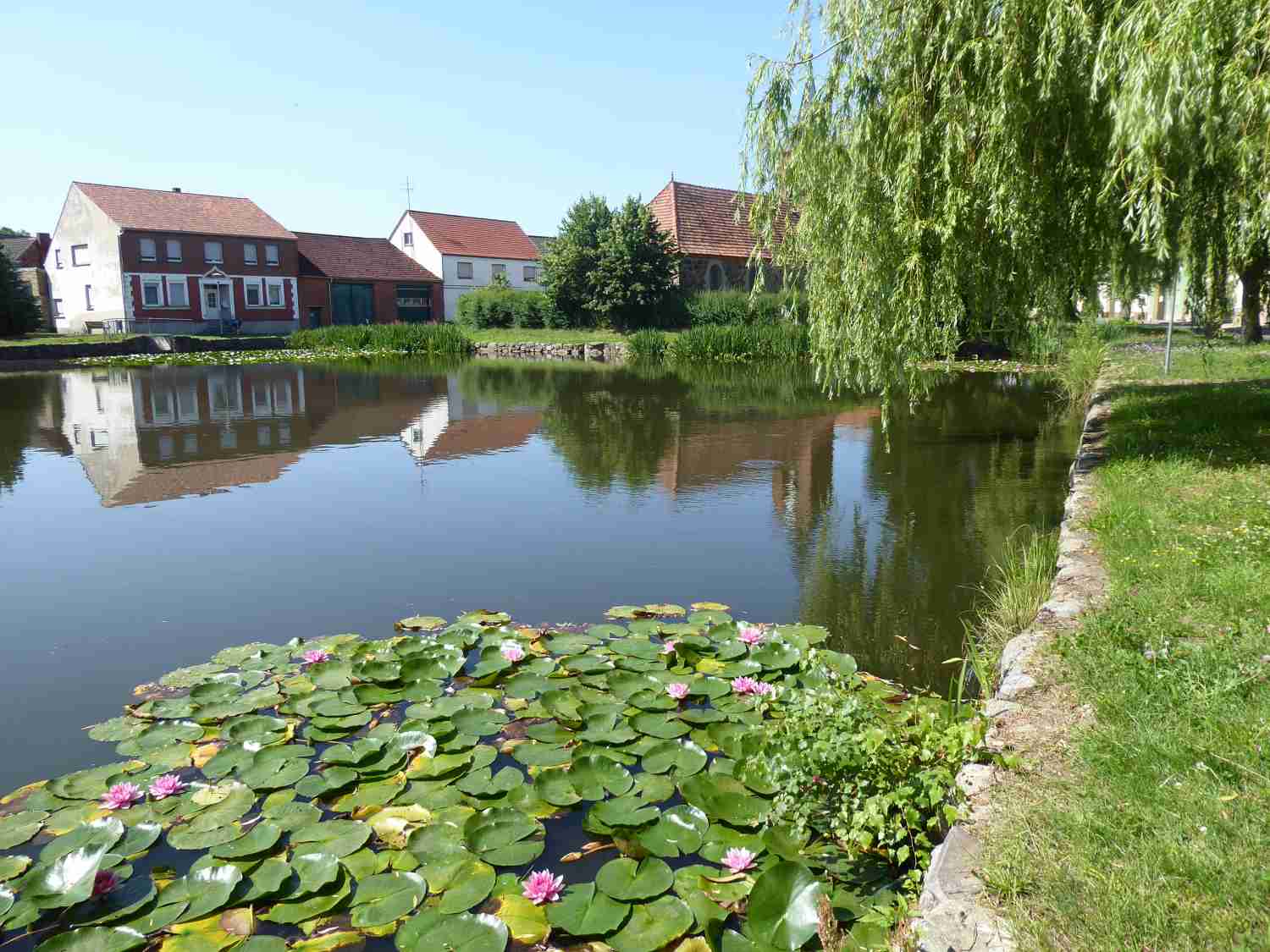 Ja, die haben wir jetzt auf neue Beine gestellt. Man muss dazu sagen, wir hatten in dem alten Gefahrenabwehrbedarfsplan, so nennt man das Konzept, viele Wasserentnahmestellen. Dort sind alle eingezeichnet. Früher wurden auch die Teiche mit aufgeführt, die wir ja schon fast gar nicht mehr haben. Denn so lange solche Teiche oder Seen, wie der See in Jeserig, keinen Zulauf oder eine Quelle haben, werden sie schrumpfen, schon auch allein durch die Verdunstung. Daher ist es wichtig, etwas zu tun, wenn wir Teiche erhalten wollen. In Benken wurde viel investiert, weil dort das Wasser von der Straße, also das Regenwasser mit eingeleitet wird. Dafür musste aber ein Vorsatz Becken gebaut sein, weil sonst wird ja auch Dreck rein gespült wird. Also es ist ein bisschen kostenintensiver aber wenn man sich den Teich anschaut, ist ein gutes Ergebnis zu sehen.