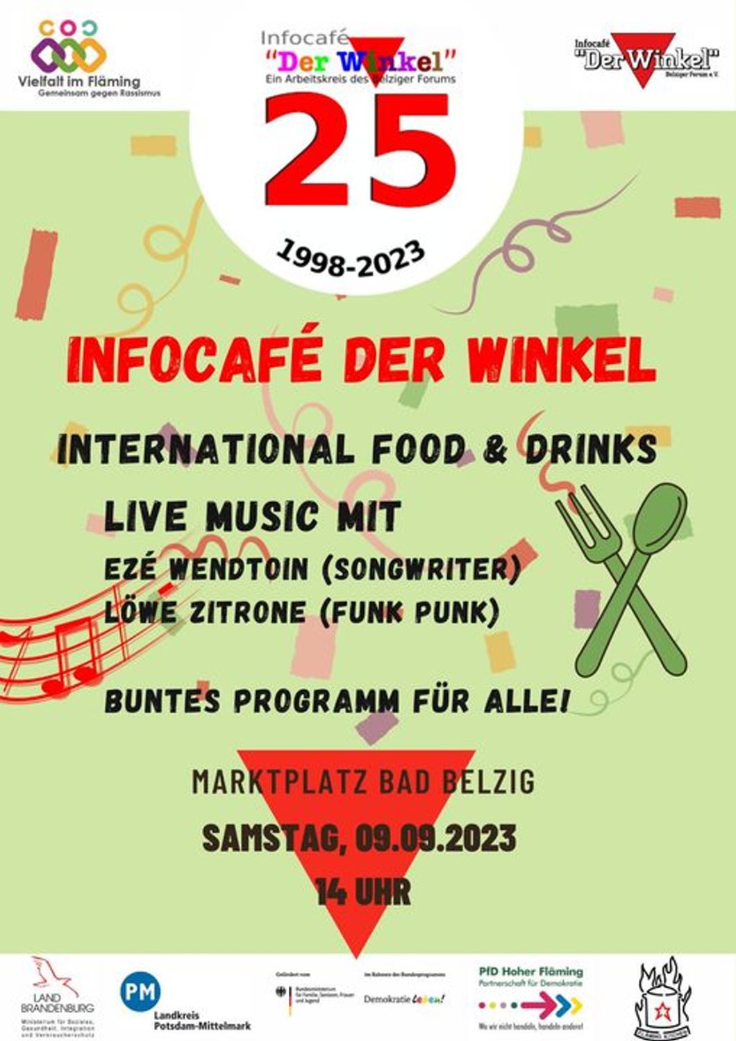 Zum 25. Geburtstag lädt das Infocafé am 9. September auf den Marktplatz Bad Belzig zu einer Veranstaltung mit Live Musik und einem bunten Programm ein.