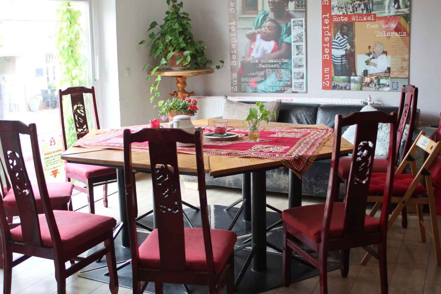 Das Café ist der erste Anlaufpunkt für Menschen, die neu hier ankommen, sei es in Gemeinschaftsunterkünften oder in Wohnungen. Die Menschen kommen hierher, um Informationen zu erhalten.