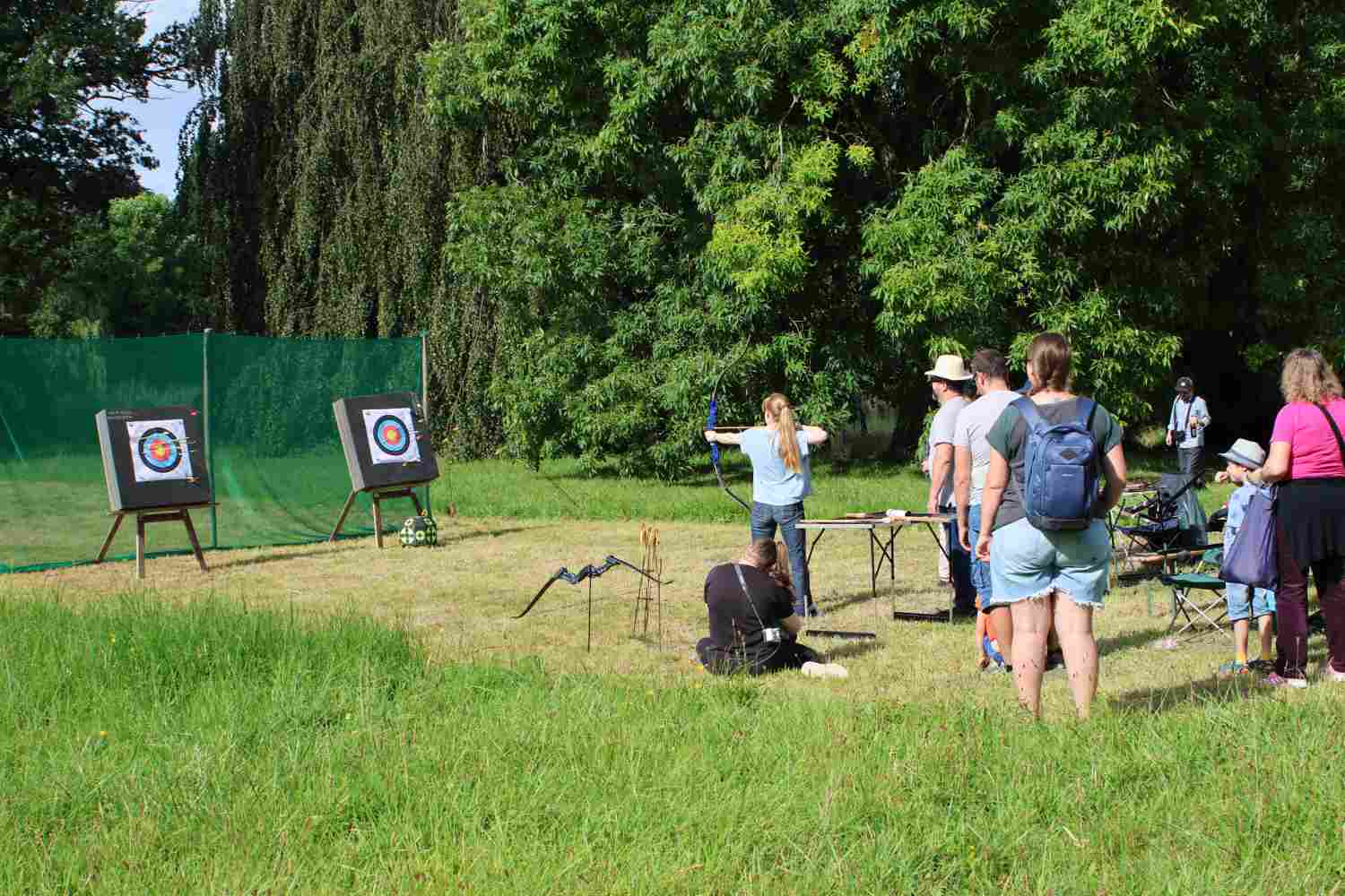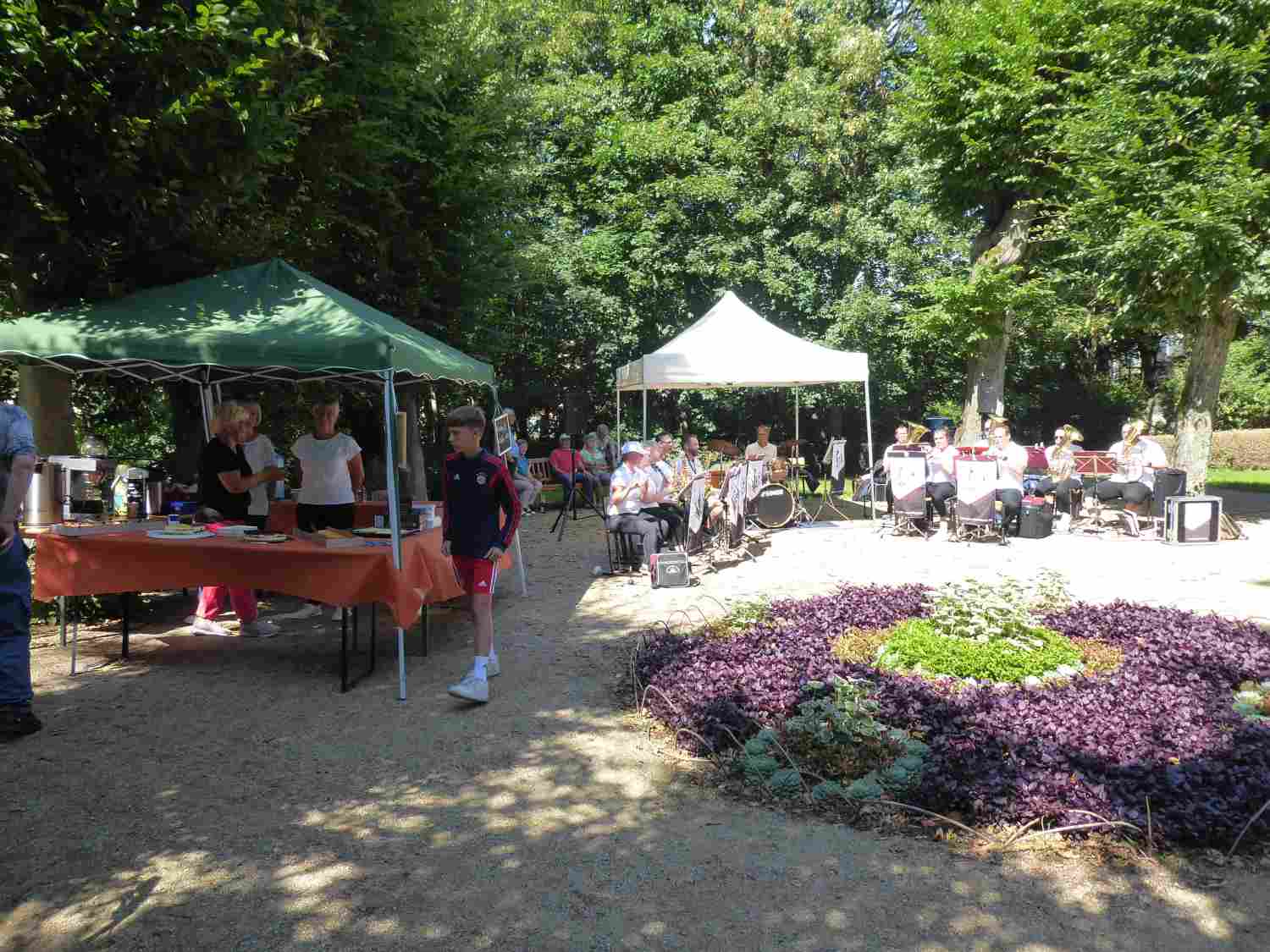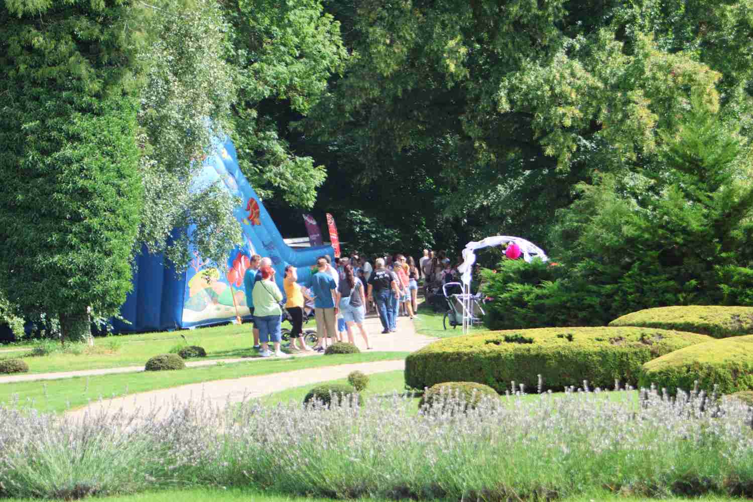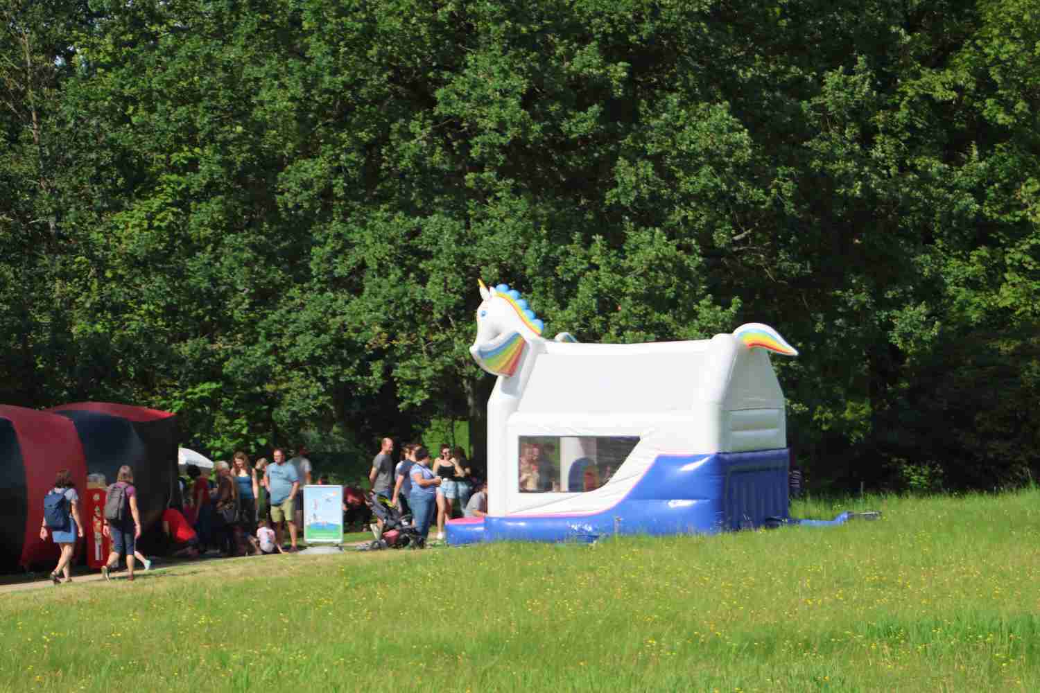 Bei Kaffee und Kuchen lauschte besonders die ältere Generation der Musik des Jugendblasorchesters. Dieses hatte nicht nur traditionelle Blasmusik, sondern auch Swing und Jazz im Programm. Im Park selbst luden viele Stände zum Mitmachen ein. Die Kleinsten freuten sich über das Ponyreiten und die vielen Hüpfburgen. Andrang herrschte stets auf der Riesenrutsche. Der Medewitzer Schützenverein hatte wieder seine Bogenschießanlage mitgebracht. Hier konnte sich jeder ausprobieren, egal ob mit oder ohne Erfahrung. Entsprechend lang war dort auch die Warteschlange. Unterwegs begegnete man immer wieder toll geschminkten Kindern – das Kinderschminken ist für die Kinder immer wieder ein Highlight. Ebenso der kleine Flohmarkt von Kindern für Kinder. So manches Spielzeug und auch Bekleidung wechselte den Besitzer.