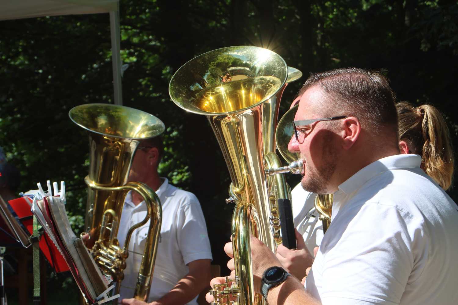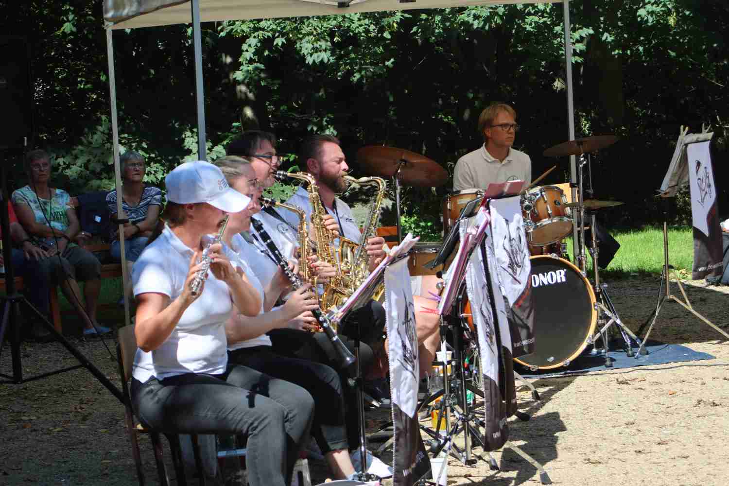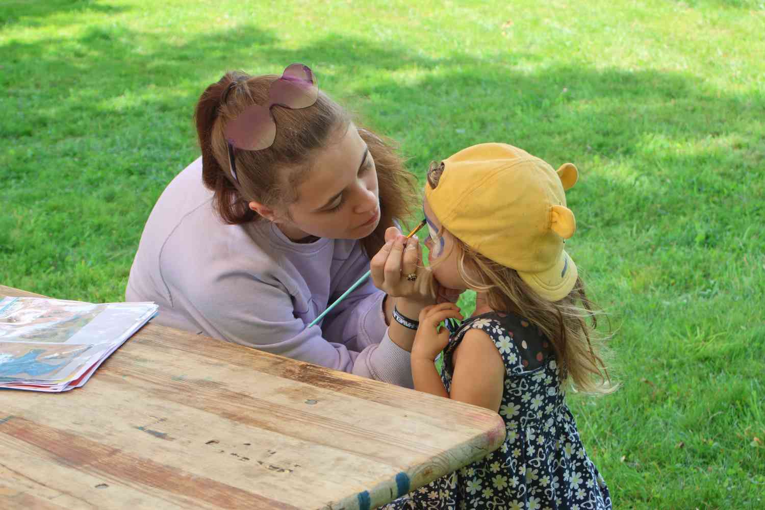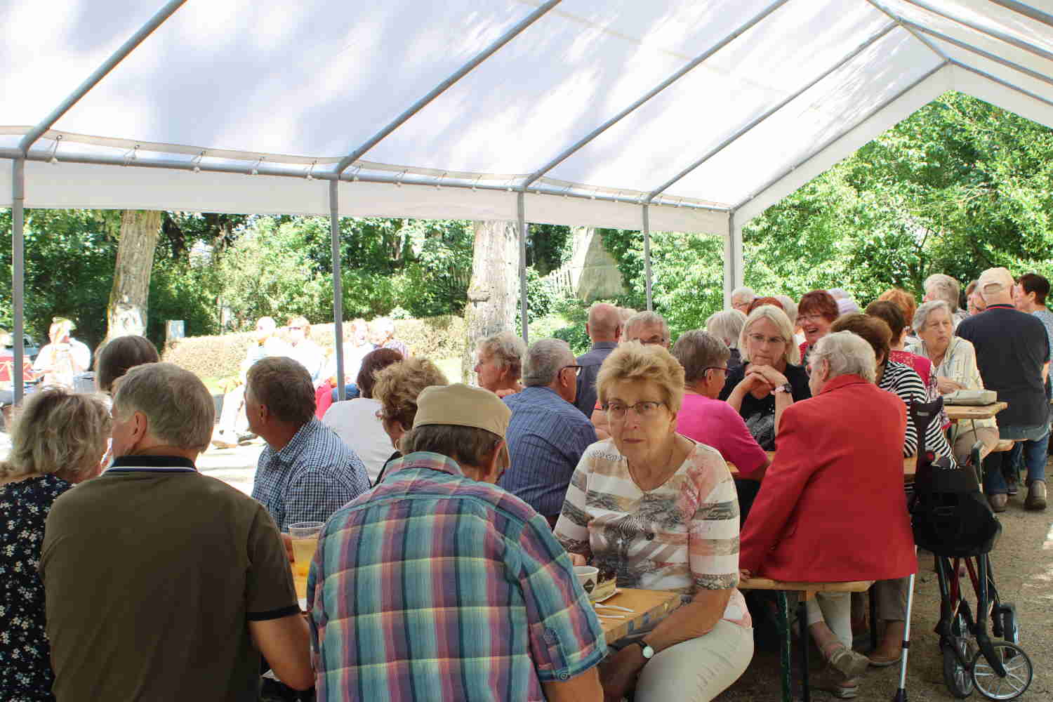 Bei Kaffee und Kuchen lauschte besonders die ältere Generation der Musik des Jugendblasorchesters. Dieses hatte nicht nur traditionelle Blasmusik, sondern auch Swing und Jazz im Programm. Im Park selbst luden viele Stände zum Mitmachen ein. Die Kleinsten freuten sich über das Ponyreiten und die vielen Hüpfburgen. Andrang herrschte stets auf der Riesenrutsche. Der Medewitzer Schützenverein hatte wieder seine Bogenschießanlage mitgebracht. Hier konnte sich jeder ausprobieren, egal ob mit oder ohne Erfahrung. Entsprechend lang war dort auch die Warteschlange. Unterwegs begegnete man immer wieder toll geschminkten Kindern – das Kinderschminken ist für die Kinder immer wieder ein Highlight. Ebenso der kleine Flohmarkt von Kindern für Kinder. So manches Spielzeug und auch Bekleidung wechselte den Besitzer.