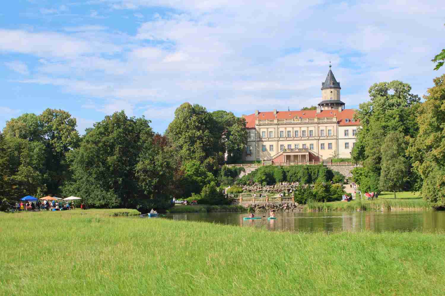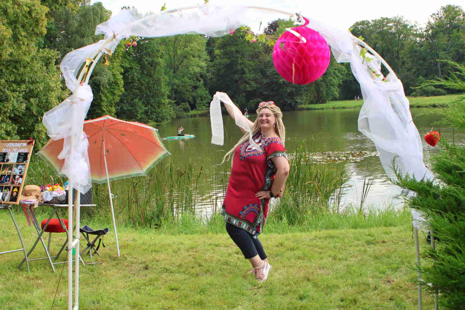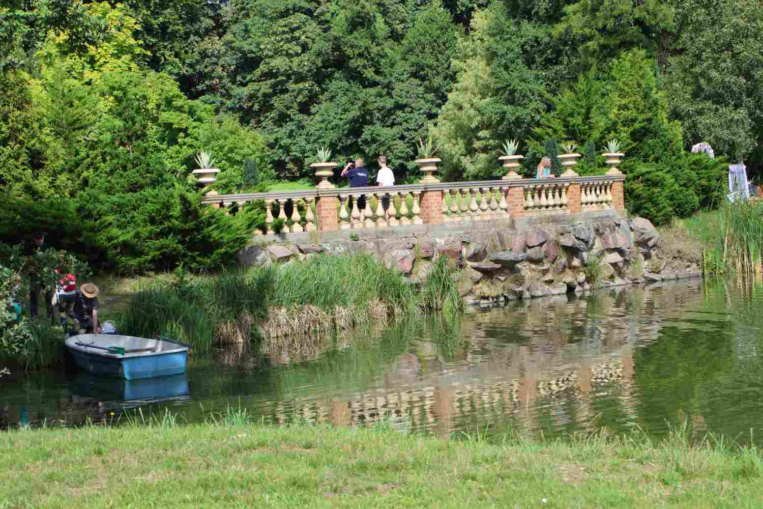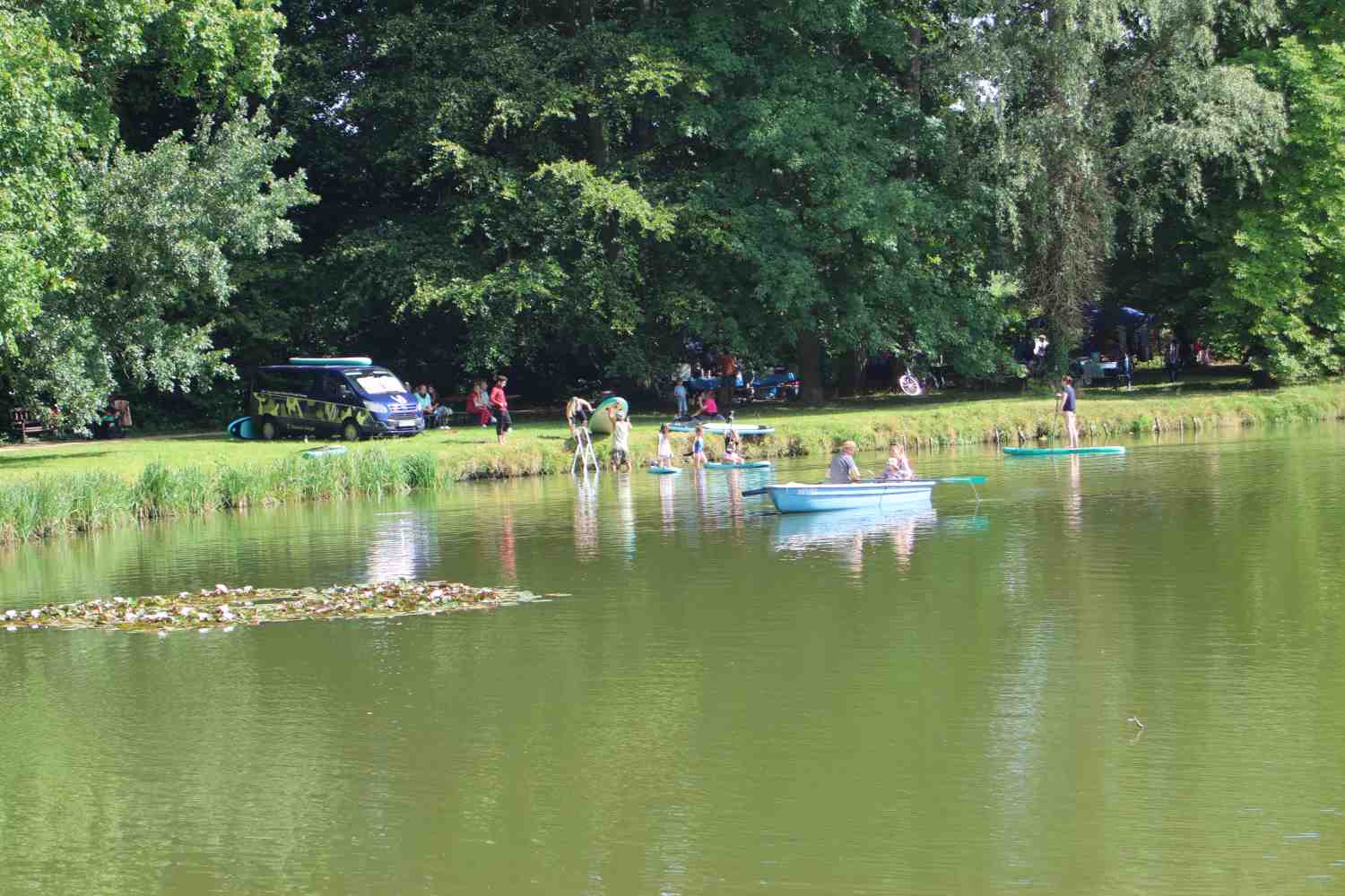 Das gefiel auch den Störchen auf dem Schornstein der ehemaligen Brauerei. Es schien, dass sie zur Musik des Jugendblasorchesters Wiesenburg kräftig mitsangen. Im Park selbst gab es viele Attraktionen für Kinder und Erwachsene. Besonders viel Spaß machte allen das Stand-Up-Paddle auf dem großen Teich. Diesen konnte man auch mit dem Boot erkunden.