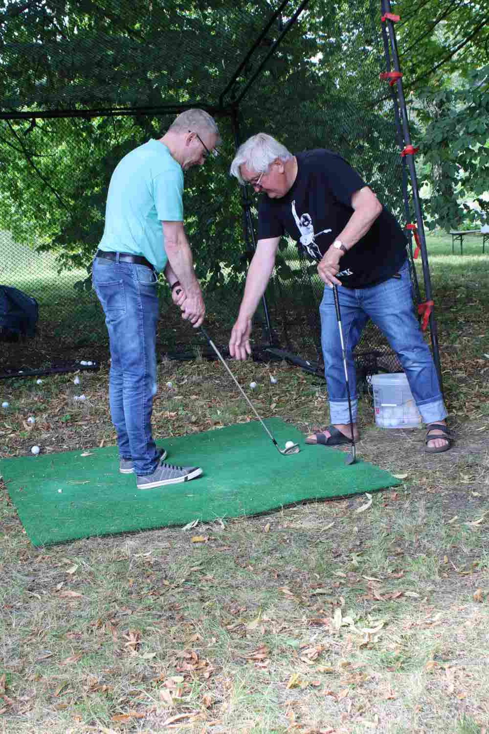 Anstehen musste man auch bei den Anglern. Schon von weitem duftete es nach frisch geräucherten Forellen. So manch einer nahm sich dort einen kleinen Vorrat mit nach Hause. Auch der Eisstand hatte gut zu tun, bei schönem und vor allem warmem Wetter wollten sich alle mit ein oder mehreren Kugeln Eis abkühlen. An allen Ecken wurde für das leibliche Wohl gesorgt, frisch gebackene Waffeln und Herzhaftes wurden angeboten. Bei Robin Weber vom Country Golf am Bahnhof konnten erste Handgriffe für das Golfen gelernt werden.
