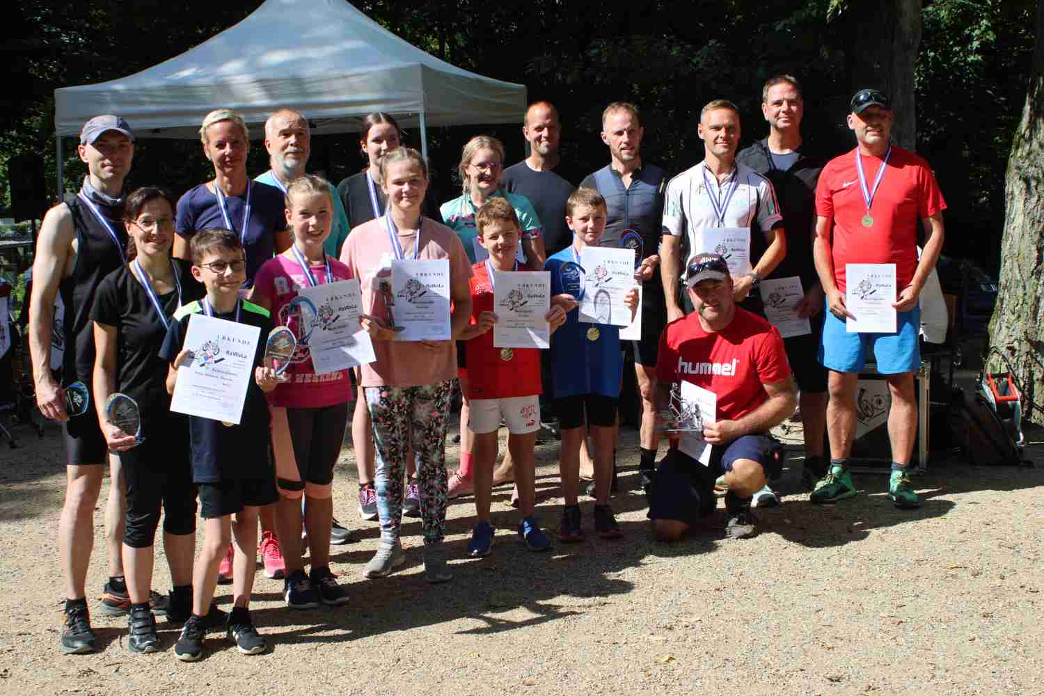 Aber es ging mit dem RaWaLa auch sportlich zu. Im Wasser, auf dem Rad und beim Laufen machten sich Freizeitsportler auf den Weg von Görzke nach Wiesenburg. Im Görzker Freibad begannen sie mit dem Schwimmen, ehe sie aufs Rad stiegen und bis nach Wiesenburg radelten. Dort ging es noch einmal einige Kilometer quer durch den Park. 16 Sportfreunde nahmen teil, zusätzlich als Mannschaft eine Familie aus Brück. Der schnellste war Marcel Bellin aus Bad Belzig, er schaffte die gesamte Strecke in 46:14 Minuten. Gewertet wurde nach Altersklassen. Am Teehäuschen bekamen dann alle Urkunden und Pokale.