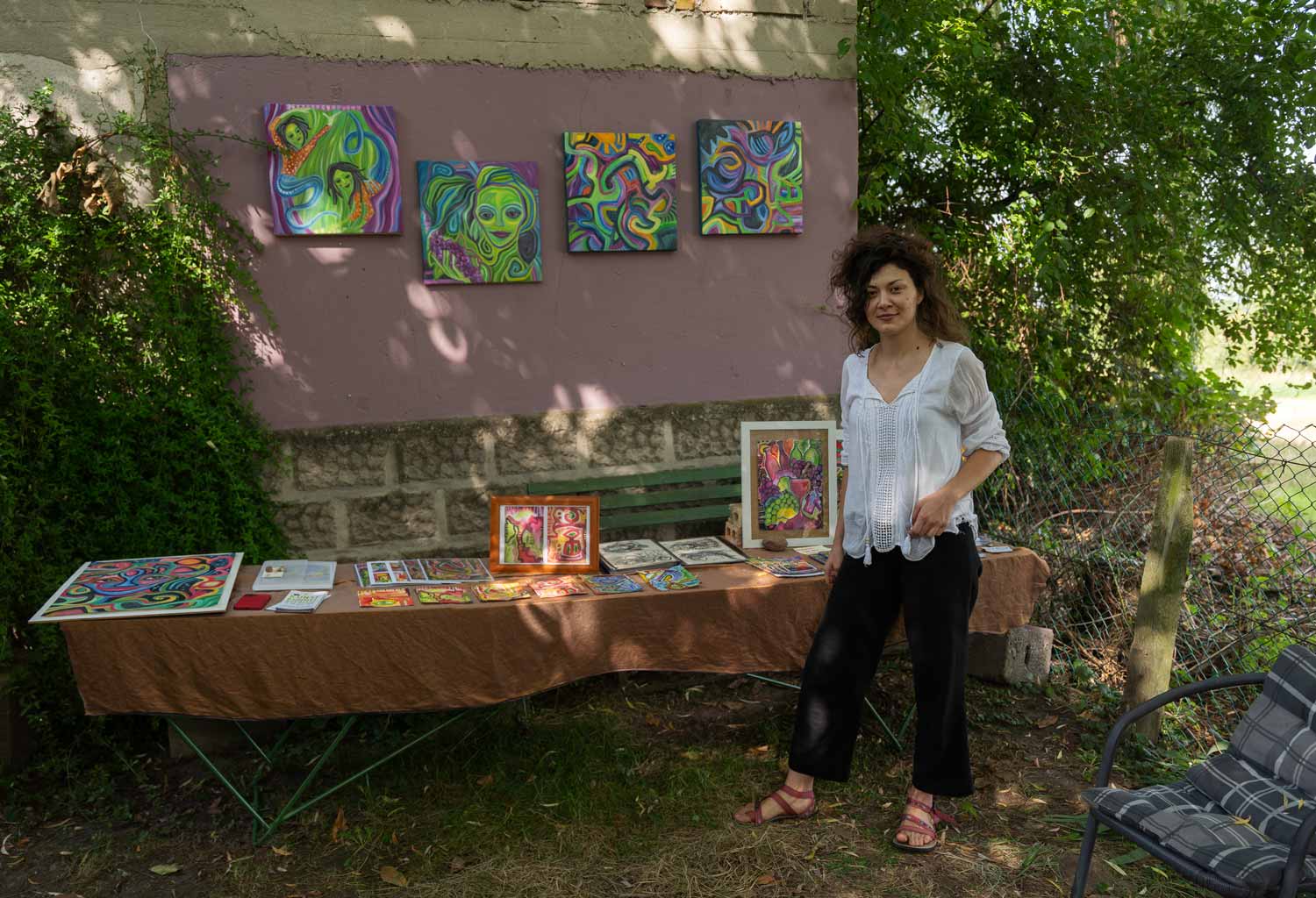Bad Belzig. Wer angesichts der Hitze am letzten Wochenende nicht nur Schatten finden, sondern auch nette Leute treffen und Kunst genießen wollte, der war im Bad Belziger Flämingweg 1 beim Kunstbummel gut aufgehoben. Die in der Türkei geborene Ezgi E. Nolde fand „den Zuspruch am Sonntag besser als am Sonnabend“, als das Thermometer deutlich über 30 Grad stieg. Ihre meist farbstarken, mythologisch inspirierten Bilder ließen ihren etwas in eine Ecke gedrängten Platz im Schatten (!) schnell finden. „Der Kunstbummel bietet eine gute Gelegenheit, künstlerische Werke zu zeigen und zu sehen“, sagte sie, stellte aber einen Unterschied zu Ausstellungen in Berlin fest: