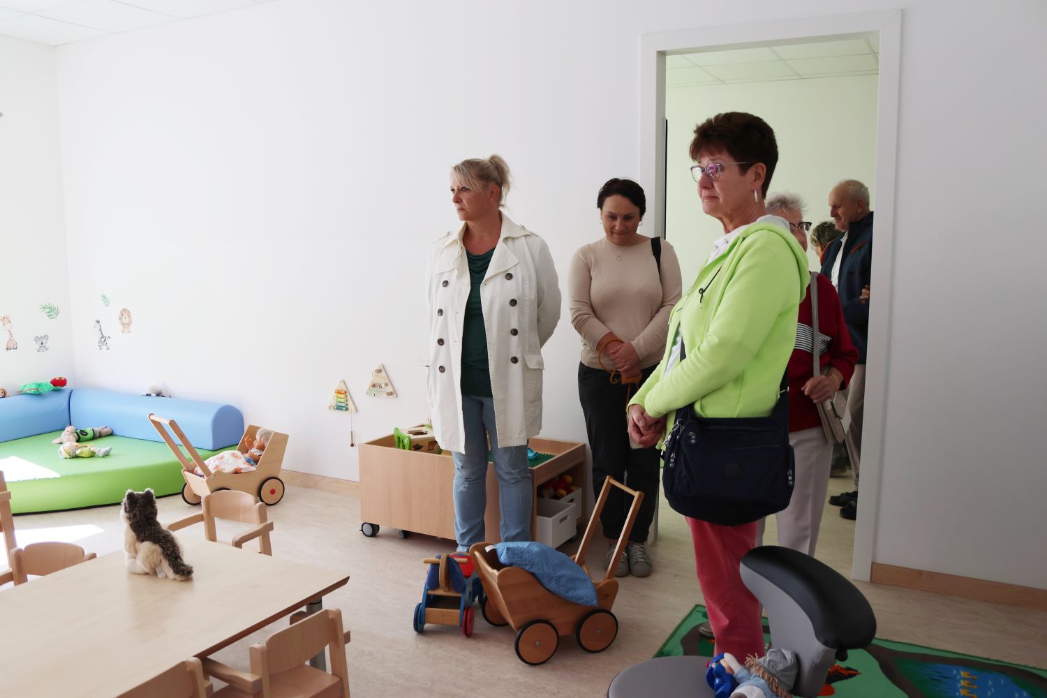Als am 18. September alle das erste Mal das Gebäude betraten, strahlten sie über das ganze Gesicht. Geräumige Flure, großzügige Gruppenräume und durch die großen Fenster viel Licht prägen die neue Kita. Ausgestattet sind diese auf das Modernste. Dabei finden sich in den Räumen sowohl IKEA Regale, aber auch Mobiliar eines Kita-Ausstatters. „Gewisse Möbel, wie die kleinen Stühle, bekommt man nur bei einem Kita-Ausstatter“, erklärt Judith Langner, Bereichsleiterin Kita im Oberlinhaus. Aber bei allem anderen wurde auch aufs Budget geschaut und gespart. Immerhin hat der ganze Bau 4,4 Mio. Euro gekostet. Jedoch blieb man im vorgesehenen Kostenrahmen. Das freute auch Bürgermeister Robert Pulz, der gemeinsam mit Steven Baltot und den Frauen der Selbsthilfegruppe Fybromyalgie Bad Belzig die Kinder der Kita „Lindenzwerge“ zu einem Spaziergang zu ihrer neuen Kita abholte. Die Selbsthilfegruppe unterstützt die Kita schon lange. So waren sie beim Kindertag und beim Sommerfest dabei, bastelten, spielten und nähten mit den Kleinen. Jetzt freuen sie sich auf Weihnachten, wenn sie mit den Kindern in der neuen Kinderküche der Kita Plätzchen backen können.
