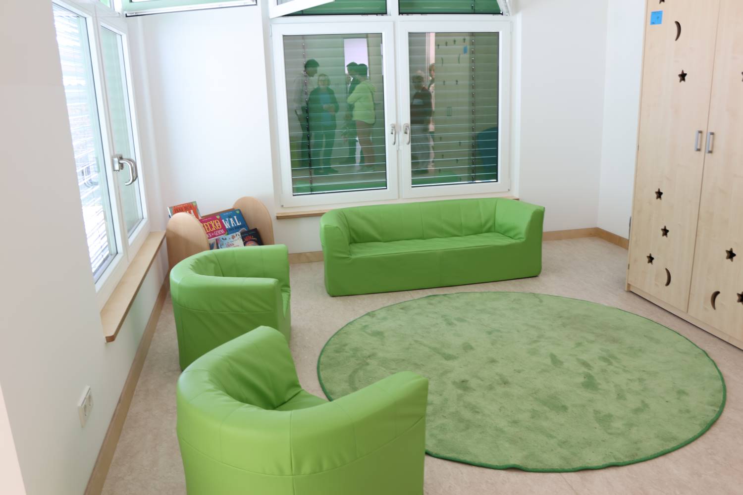 Viele Kinder sind aus dem ehemaligen Containerbau schon umgezogen. Bis November sollen sich dort 80 Kinder wohl fühlen. Ausgelegt ist die Kita für 85 Kinder. Kita-Leiter Steven Baltot hat das Gefühl, dass der Bedarf an Kitaplätzen im Moment einigermaßen gedeckt ist. Die Anfragen halten sich derzeit in Grenzen, sagte er. Es gäbe zwar eine kleine Warteliste für das kommende Jahr, die aber nicht beunruhigend ist. Im Moment arbeiten 13 Erzieherinnen und Erzieher in der Kita. „Wir führen aber immer noch Gespräche, denn der Personalbedarf ist höher, als gedacht“, so Steven Baltot. Man kann sich also noch bewerben.