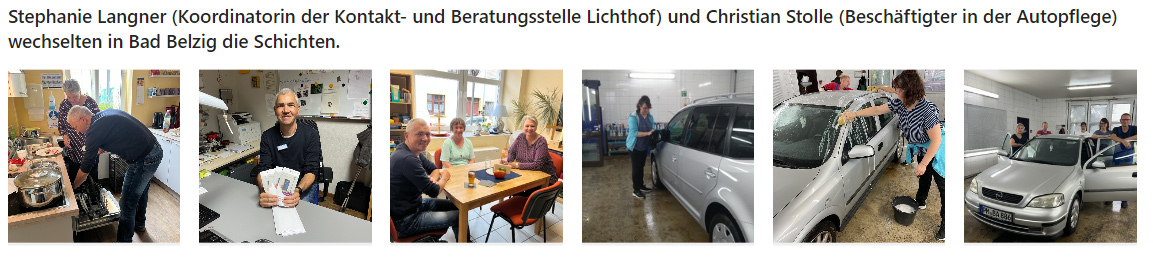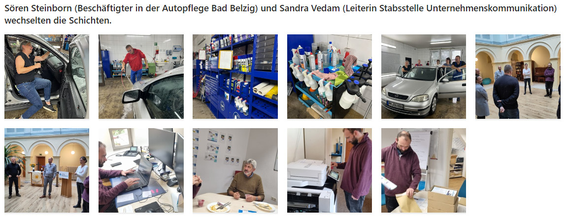 “Die Autowäsche im Dienstleistungszentrum der Lafim-Diakonie Dienste zur Teilhabe in Bad Belzig war einen Tag lang mein Arbeitsplatz. Statt Computer, Telefon und Kopierer waren dabei Lappen, Schwamm und Staubsauger meine Arbeitsgeräte. Es war beeindruckend zu sehen, mit welcher Ausdauer und Sorgfalt die Beschäftigten ihren Tätigkeiten nachgehen und die Fahrzeuge bis in die letzte kleine Ecke sauber machen. Ein interessanter Tag und eine bereichernde Erfahrung – jedem zur Nachahmung empfohlen!”