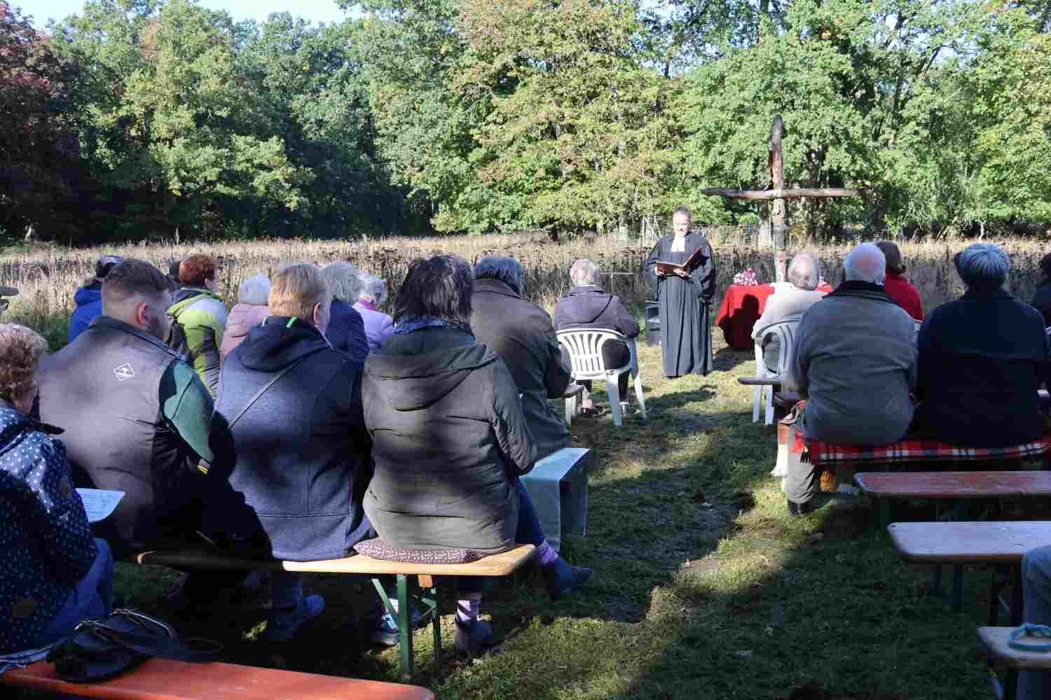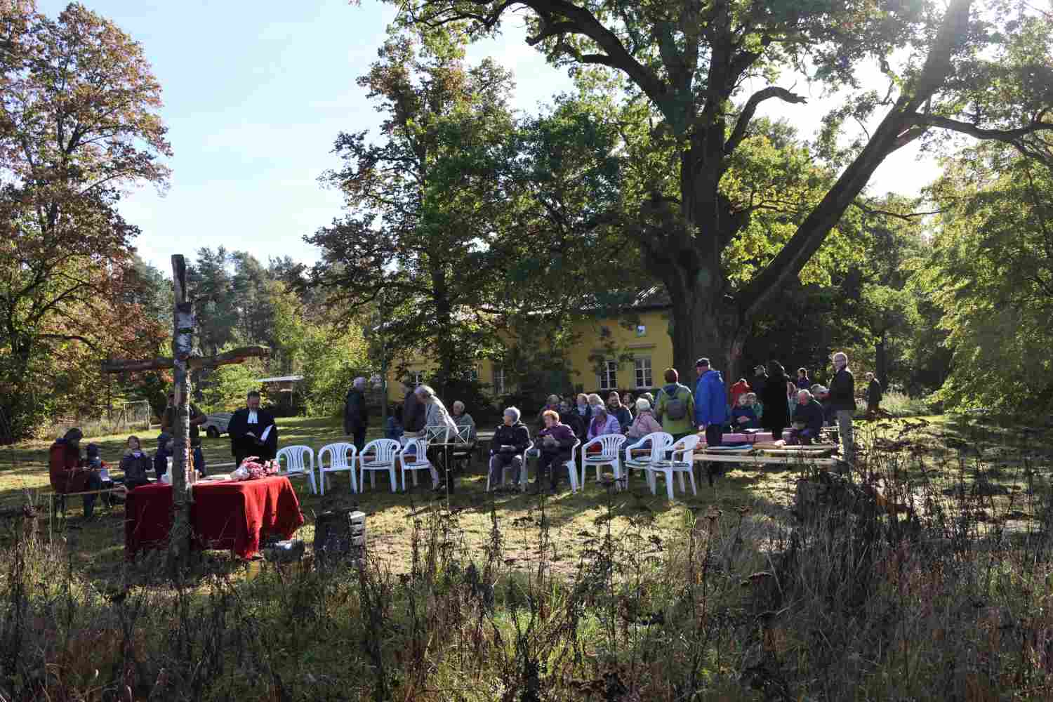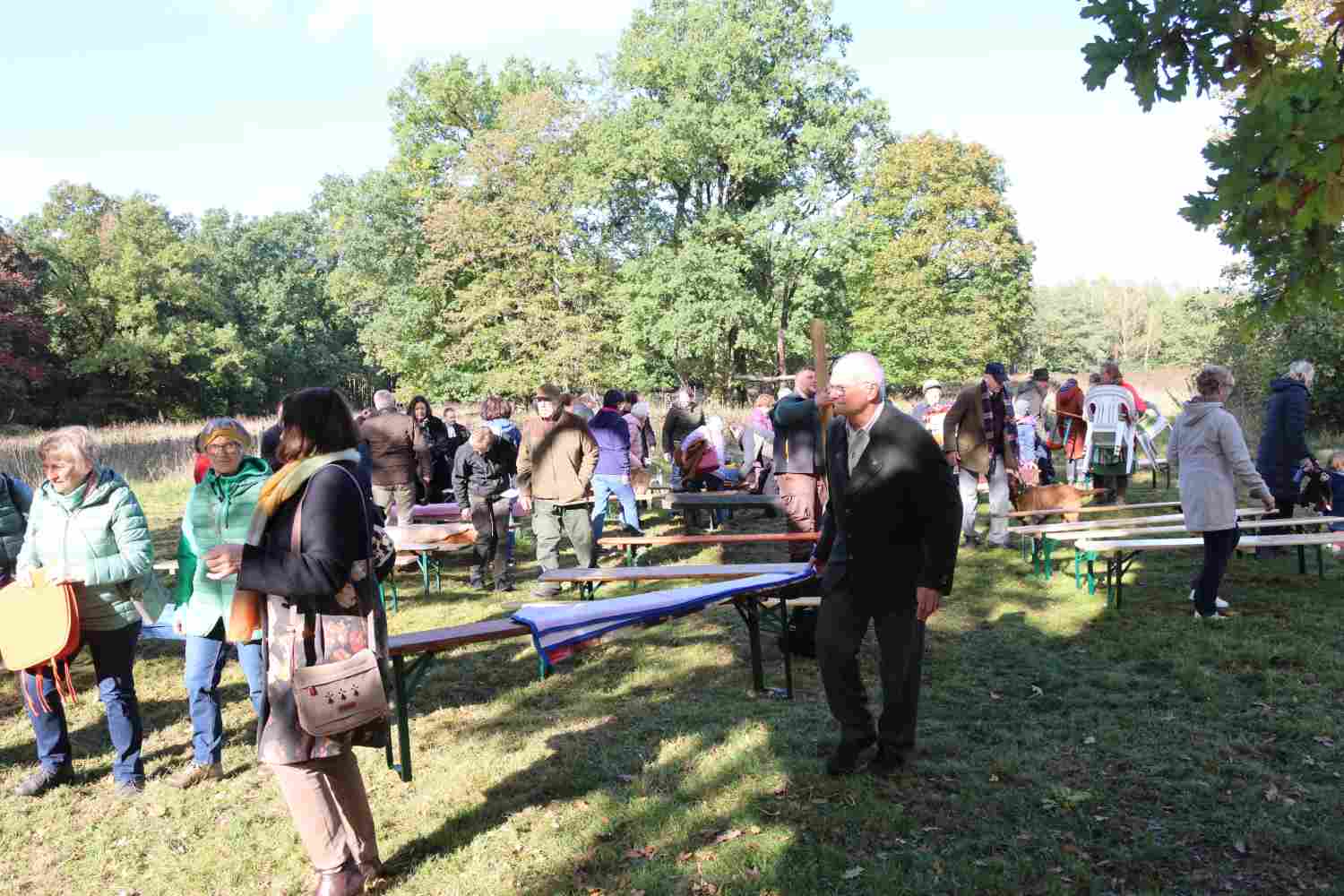 Zum Gedenken an den Schutzpatron der Jägerinnen und Jäger finden Anfang November überall Hubertusmessen statt. Die Kirchengemeinde Wiesenburg war wieder am Forsthaus in Zipsdorf zu Gast unter einer 700 Jahre alten Eiche. Die Familie von Lüttichau richtet schon seit mehreren Jahren den Gottesdienst aus. Bemerkenswert ist, dass die Gäste nicht nur aus dem Gemeindegebiet, sondern von viel weiter her kommen, um diesen besonderen Gottesdienst zu feiern. Eröffnet wurde er in diesem Jahr von Steffen Schüler mit seinem Jagdhorn. Gemeinsam wurde gebetet und gesungen. Pfarrer Stephan Schönfeld hielt eine sehr eindringliche Predigt, schon fast einen Aufruf zum Erhalt unserer Natur. Und ja, auch die Jagd gehört dazu, aber nicht als sportliche Betätigung.