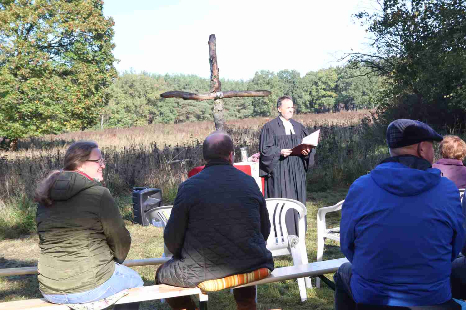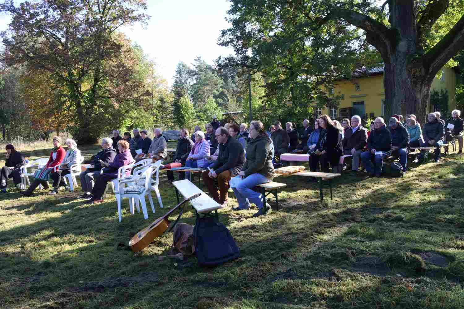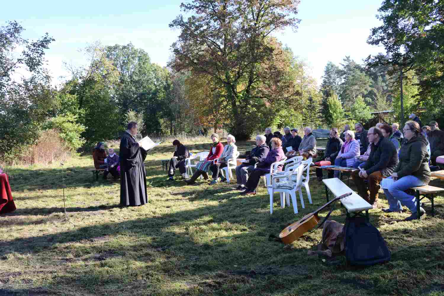 Zum Gedenken an den Schutzpatron der Jägerinnen und Jäger finden Anfang November überall Hubertusmessen statt. Die Kirchengemeinde Wiesenburg war wieder am Forsthaus in Zipsdorf zu Gast unter einer 700 Jahre alten Eiche. Die Familie von Lüttichau richtet schon seit mehreren Jahren den Gottesdienst aus. Bemerkenswert ist, dass die Gäste nicht nur aus dem Gemeindegebiet, sondern von viel weiter her kommen, um diesen besonderen Gottesdienst zu feiern. Eröffnet wurde er in diesem Jahr von Steffen Schüler mit seinem Jagdhorn. Gemeinsam wurde gebetet und gesungen. Pfarrer Stephan Schönfeld hielt eine sehr eindringliche Predigt, schon fast einen Aufruf zum Erhalt unserer Natur. Und ja, auch die Jagd gehört dazu, aber nicht als sportliche Betätigung.
