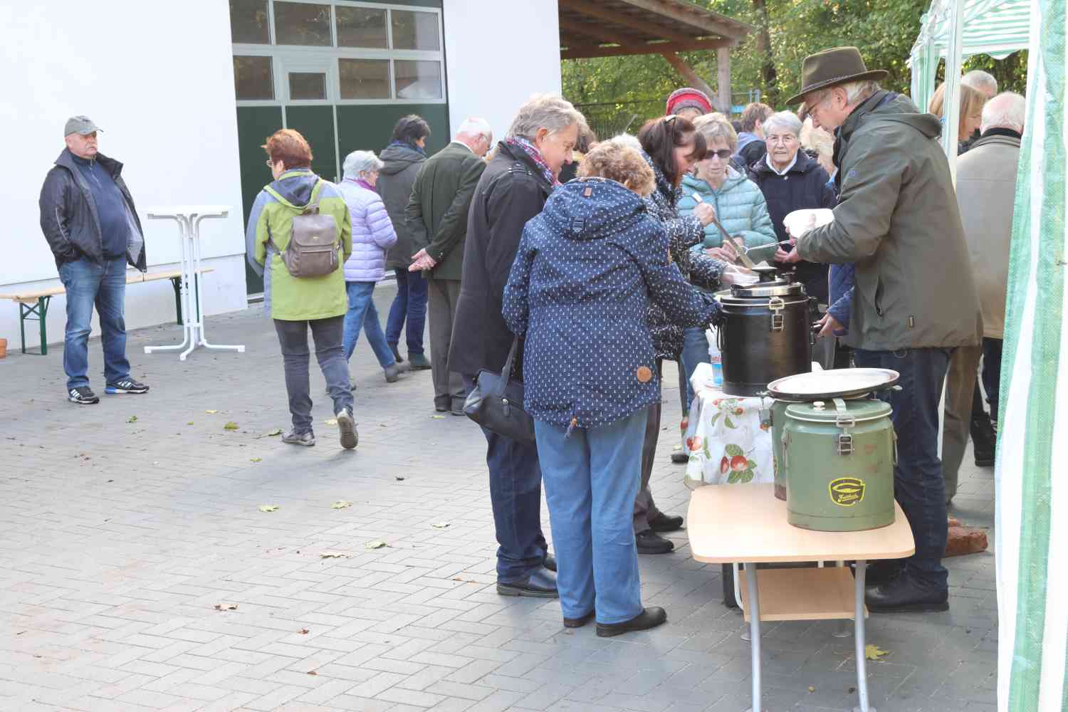 Nach dem Gottesdienst konnten die Gäste noch eine Weile zusammensitzen. Das Wetter meinte es gut und so gab es Erbsensuppe, Schmalzstullen, Kaffee und Kuchen unter freiem Himmel. Dafür allen Organisatoren ein großes Dankeschön.
