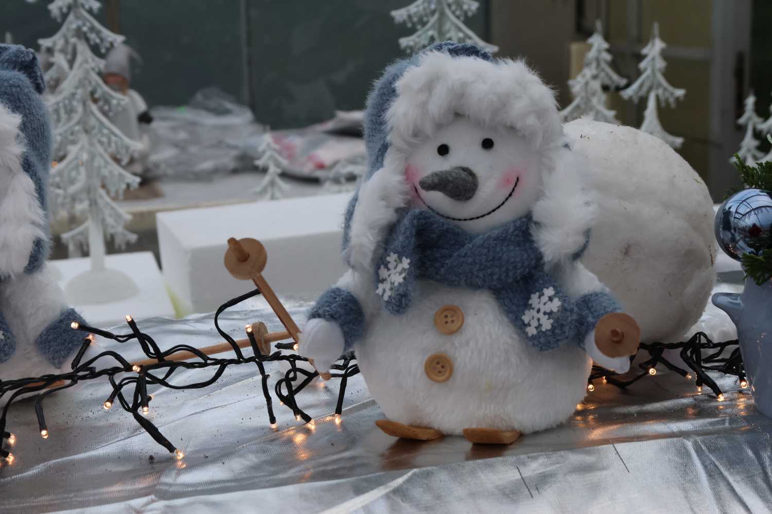 Das große Gewächshaus wurde wieder in einen kleinen Weihnachtsbasar verwandelt. Figuren, Kugeln und Lichter schmücken nun das Zelt statt Tomatenpflanzen und Geranien. Inhaberin Anett Blasche und ihre Kolleginnen Ines Pluge, Janet Bartel und Emie Allrich habe das Zelt in ein Weihnachtswunderland verwandelt. Schon jetzt steht dort alles, was kein frisches Grün enthält. Die Gestecke und Kränze mit Tannengrün werden erst kurz vor der Adventausstellung gefertigt.
