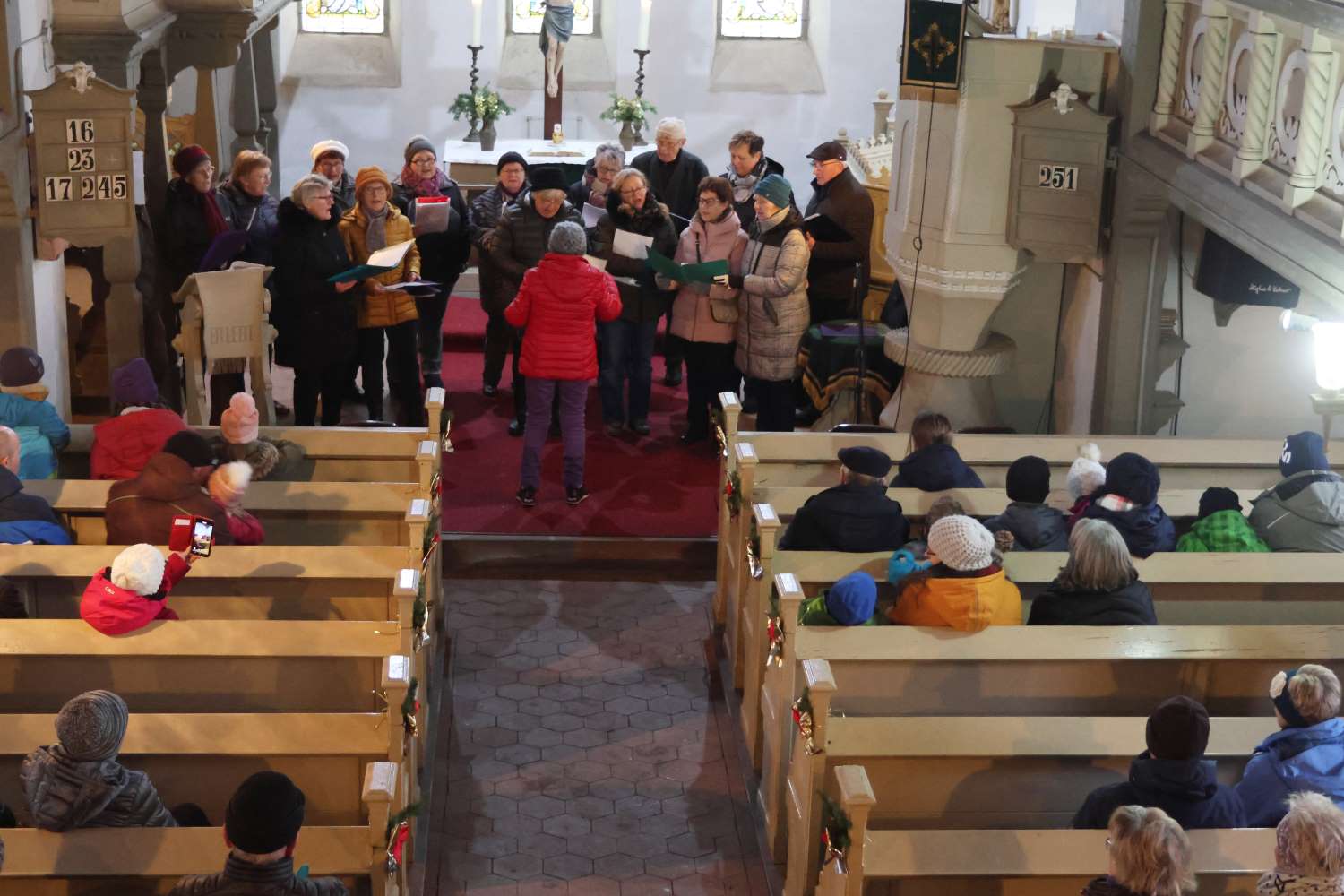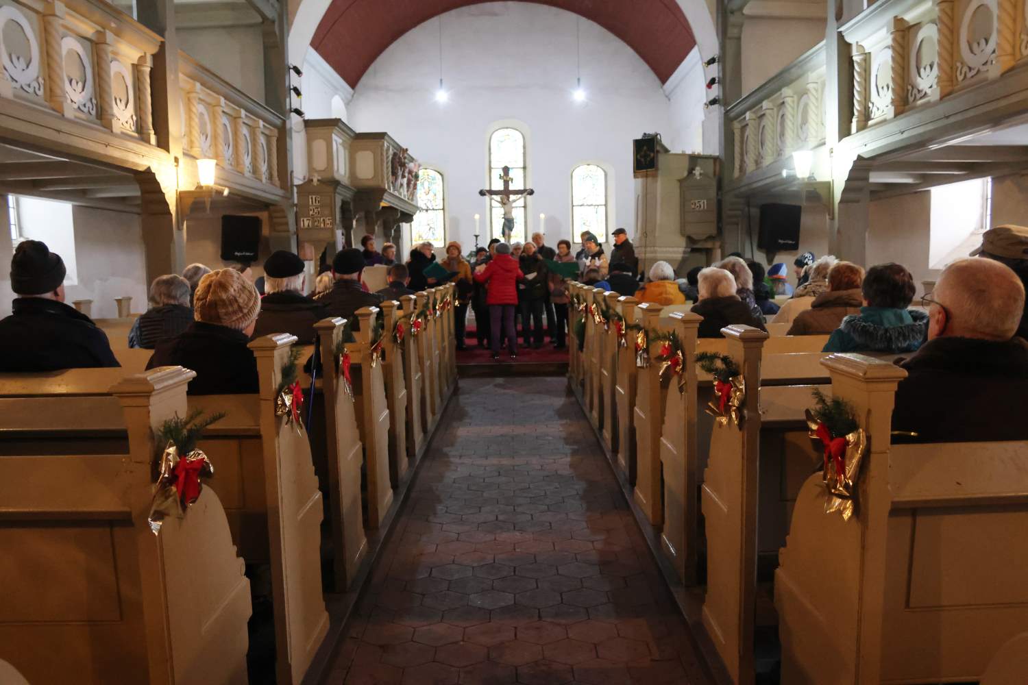 adventsmarkt,reetz,weihnachten,kircheTraditionell begann der Nachmittag mit dem Adventssingen in der Kirche. Die Reetzer Singegruppe hatte wieder viele Lieder zum Mitsingen im Gepäck. Erstmals dabei waren die Kinder des Kinderkirchenkreises unter Leitung von Florian Jakubowski. Trotz der Kälte war die Kirche sehr gut besucht. Nach dem gemeinsamen Singen spielte Erhard Loth den Nachmittag über an der Orgel und wer Lust hatte, konnte den Klängen lauschen. Der Vorraum der Kirche war festlich geschmückt. Günter Laengner sorgte wieder für eine wunderschöne Tanne, die Uwe Friedrich dann in den Ständer bringen musste. Für das Schmücken waren Ilka Iversen, Doritt Volkmann, Silke Köpernick und Elsa Hoffmann zuständig.