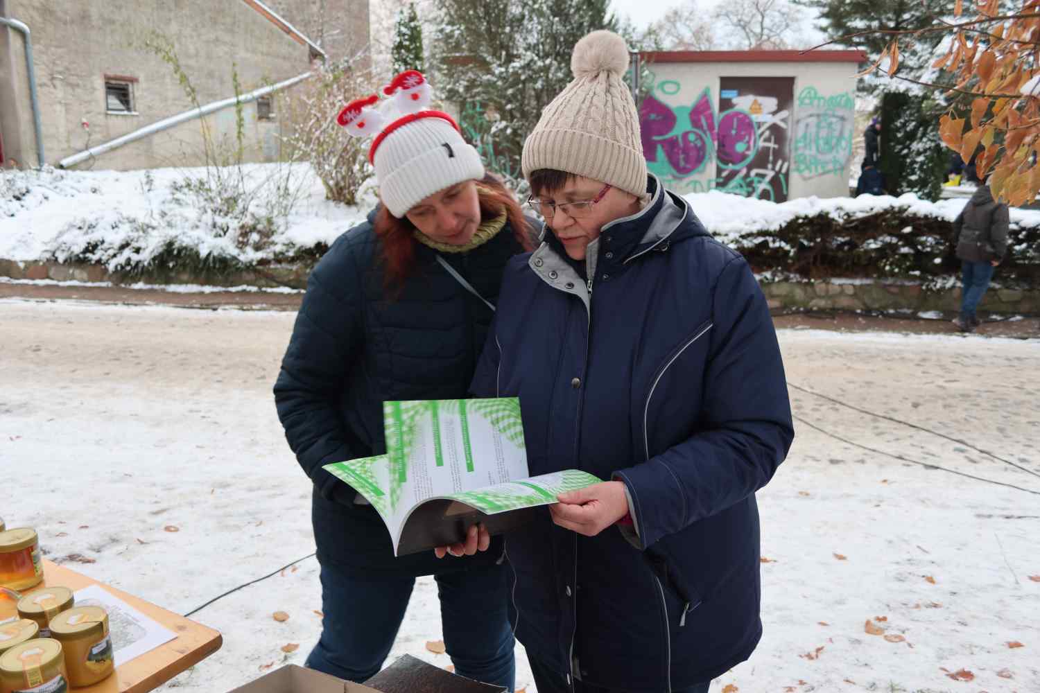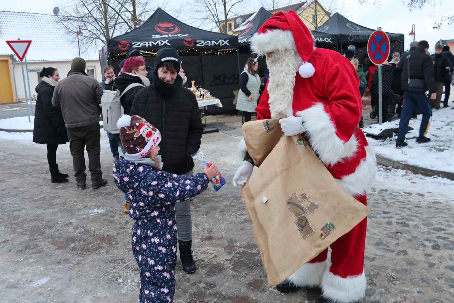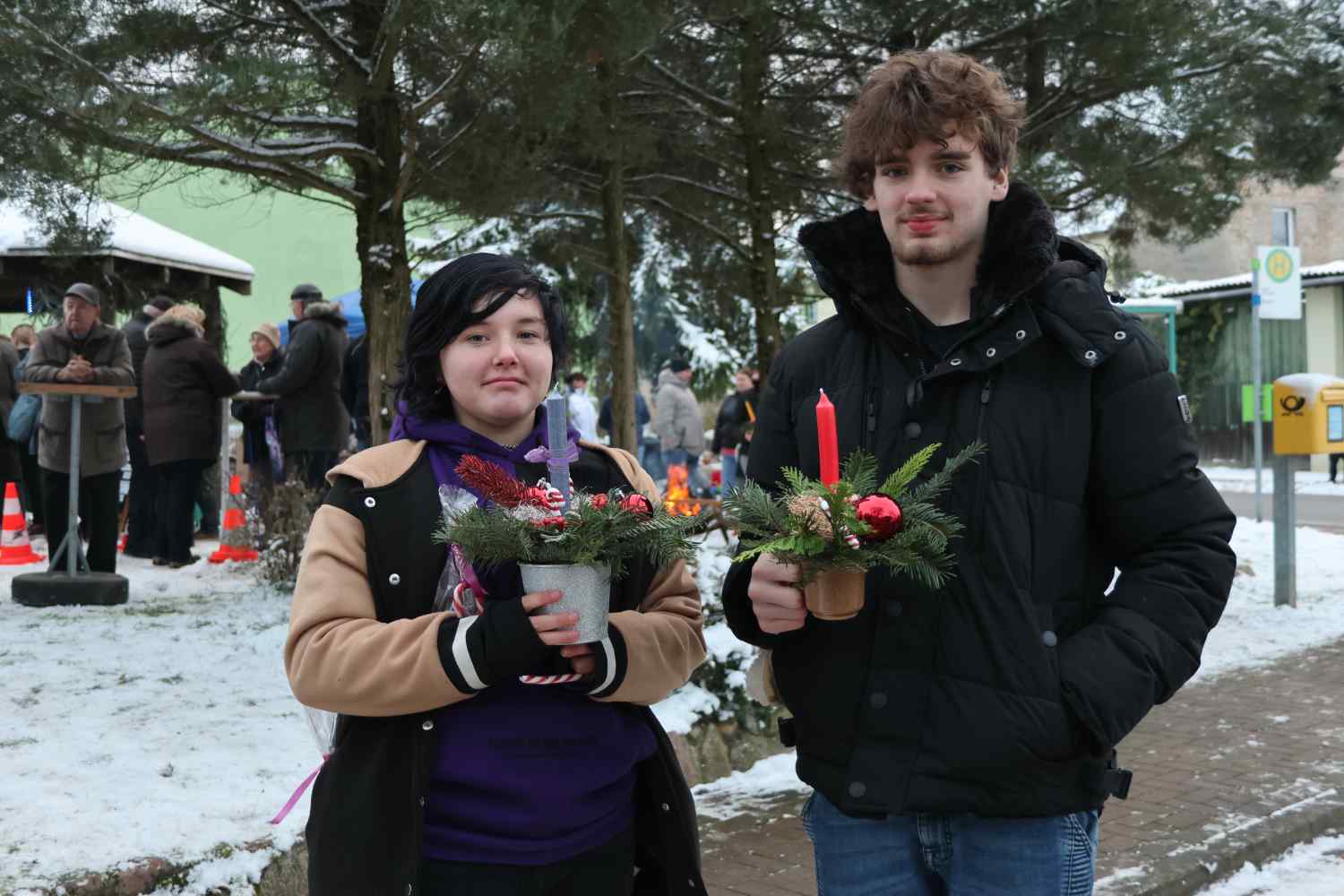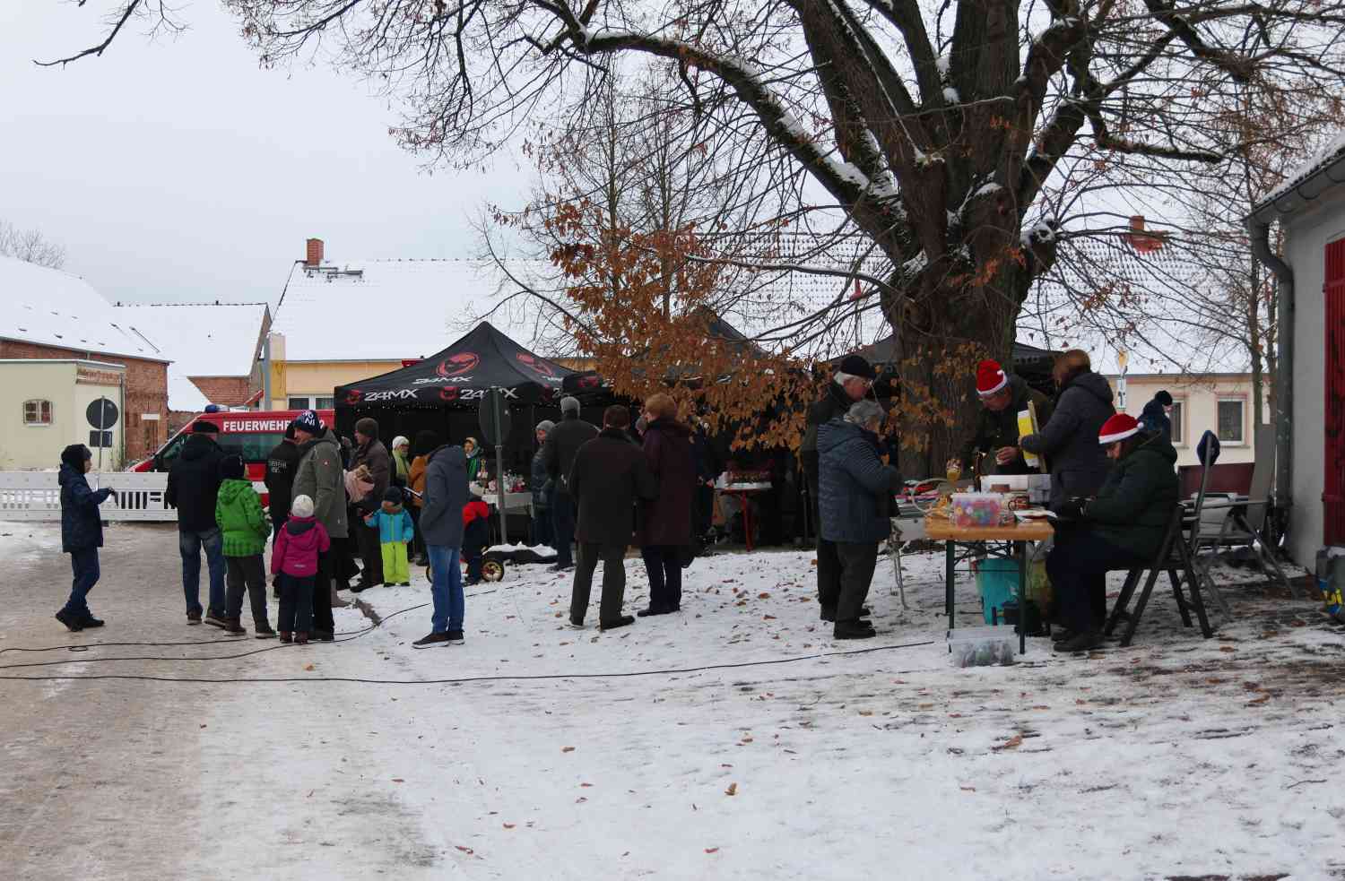 Reetz. Das gab es lange nicht in Reetz, Schnee zum Adventsmarkt. Aber das hob die Vorweihnachtsstimmung doch sehr an.