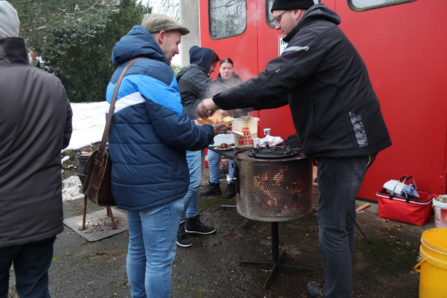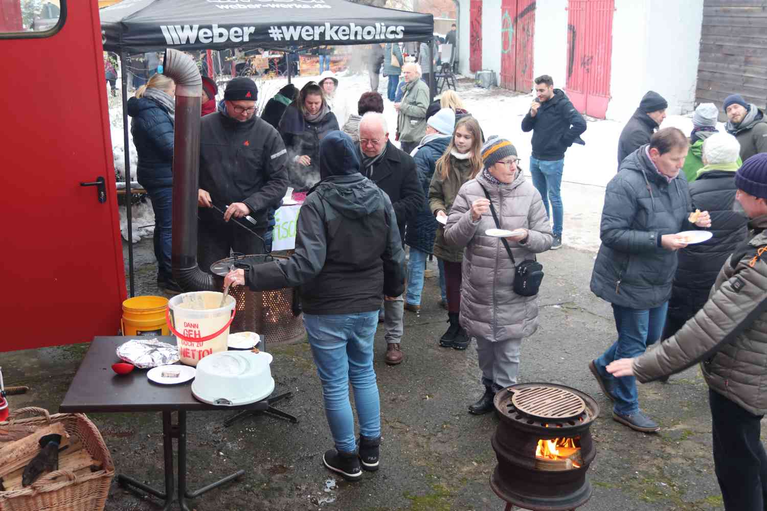 Am Abend wurde es dann so richtig gemütlich. Die Feuerschale brannte und die Lichter leuchteten in der Dunkelheit. Alles scharte sich um den Pavillon und die Gäste ließen den Nachmittag bei Würstchen, Punsch und Glühwein ausklingen.